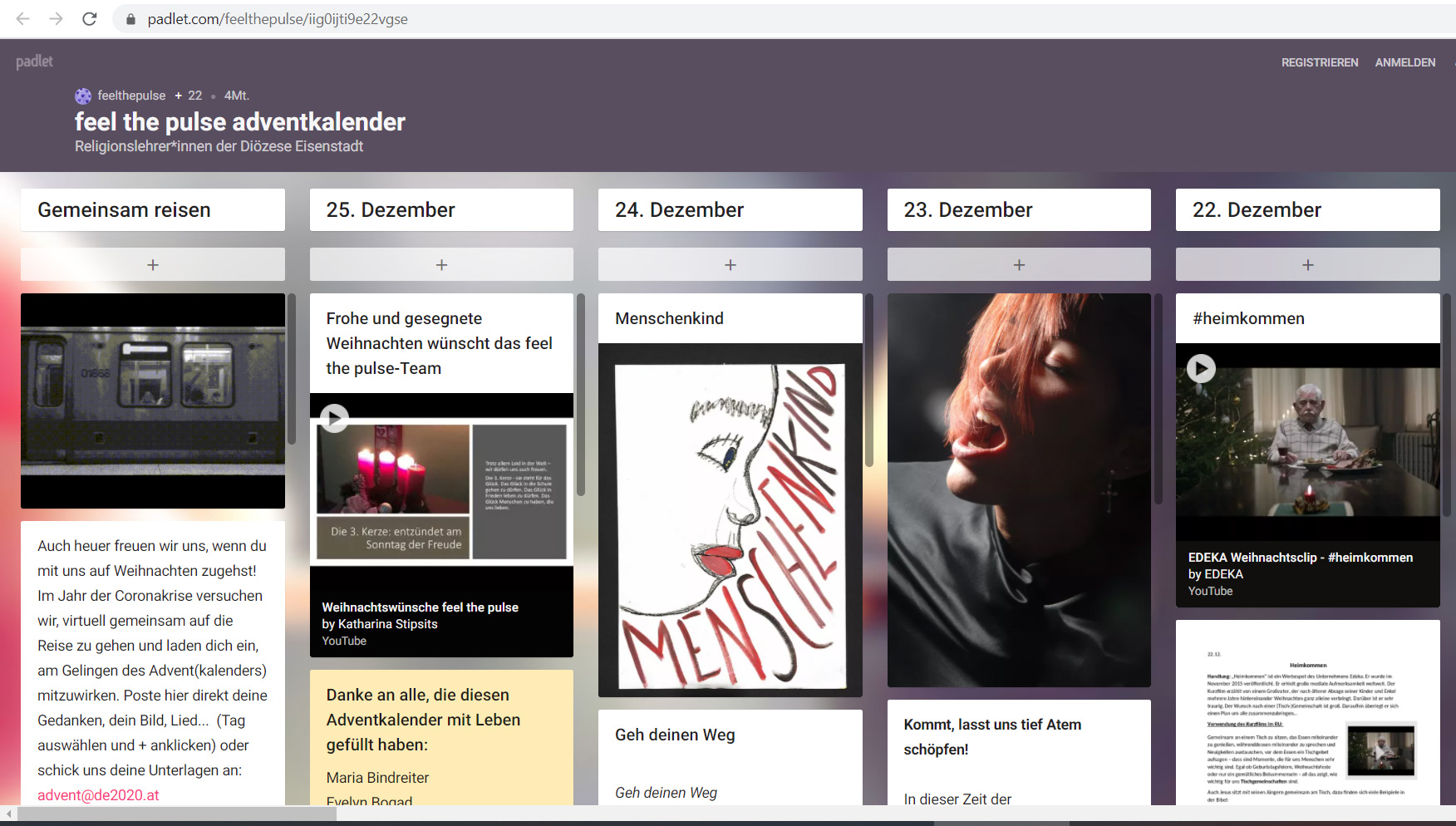 Die tiefe Sehnsucht nach Frieden zeigte sich auch in einer nahezu unüberblickbaren Vielfalt an Initiativen, Unterrichtsmaterialien und pädagogischen Ideen. Wir als "feel the pulse"-Team haben eine Auswahl an Materialien und Ideen auf unserem Friedens-Padlet gesammelt.