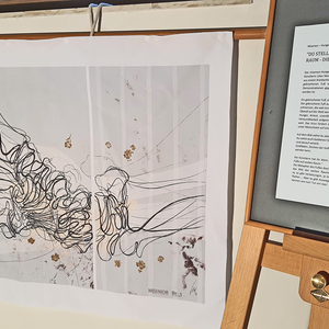 Pöttsching / Firmvorbereitung: Dieses Hungertuch ist eigentlich ein Leintuch. Ein Leintuch aus einem Krankenhaus. Dieses Tuch hat die chilenische Künstlerin Lilian Moreno Sánchez gemacht. Sie hat einen Fuß, besser gesagt das Röntgenbild eines Fußes dargestellt.