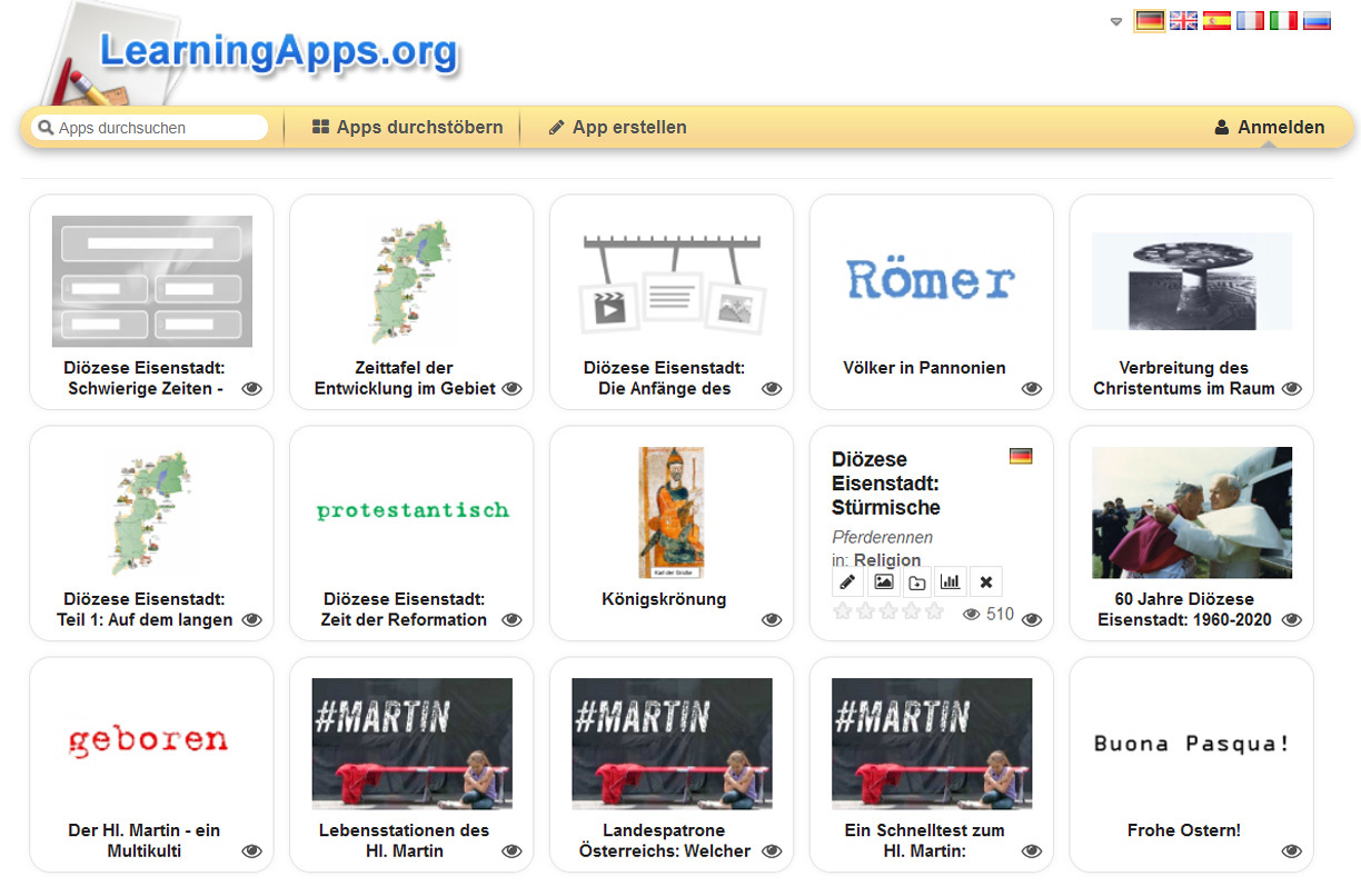 Learningapps zur Diözesangeschichte und zum Landespatron