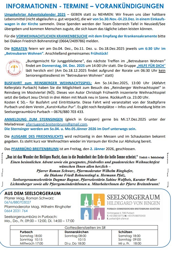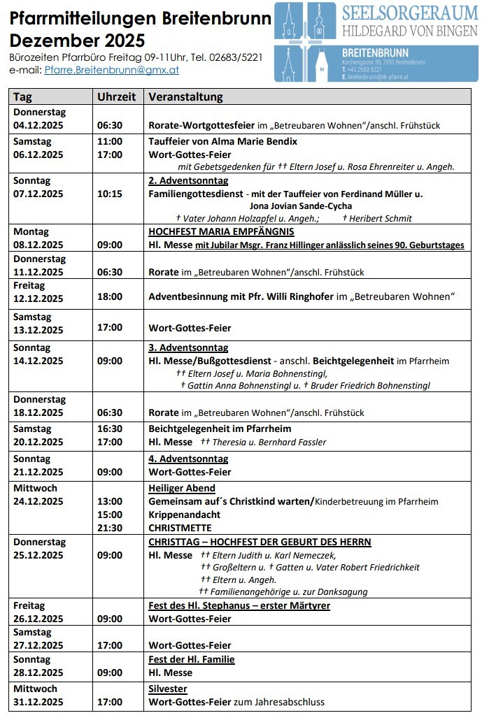 Pfarrmitteilung Dezember 2025