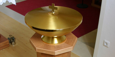 Die Taufe findet für gewöhnlich am Taufbrunnen statt. Wenn dort nicht alle Mitfeiernden Platz finden, kann die Taufe auch an einer anderen geeigneten Stelle der Kirche gespendet werden.