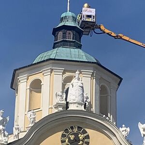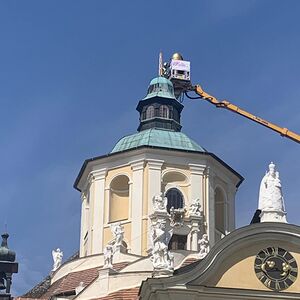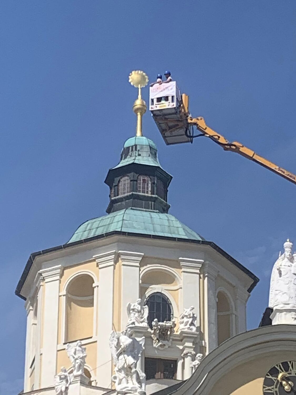 Auf der Kuppel der Kreuzkapelle erstrahlt ab heute wieder die gewaltige goldene Sonne...