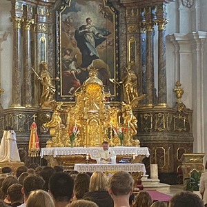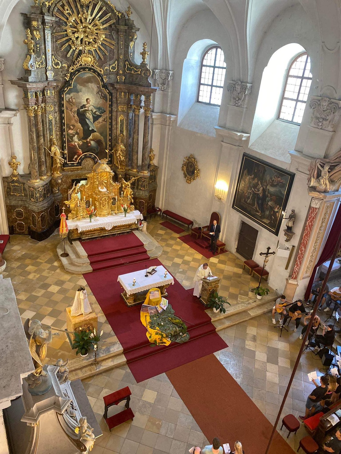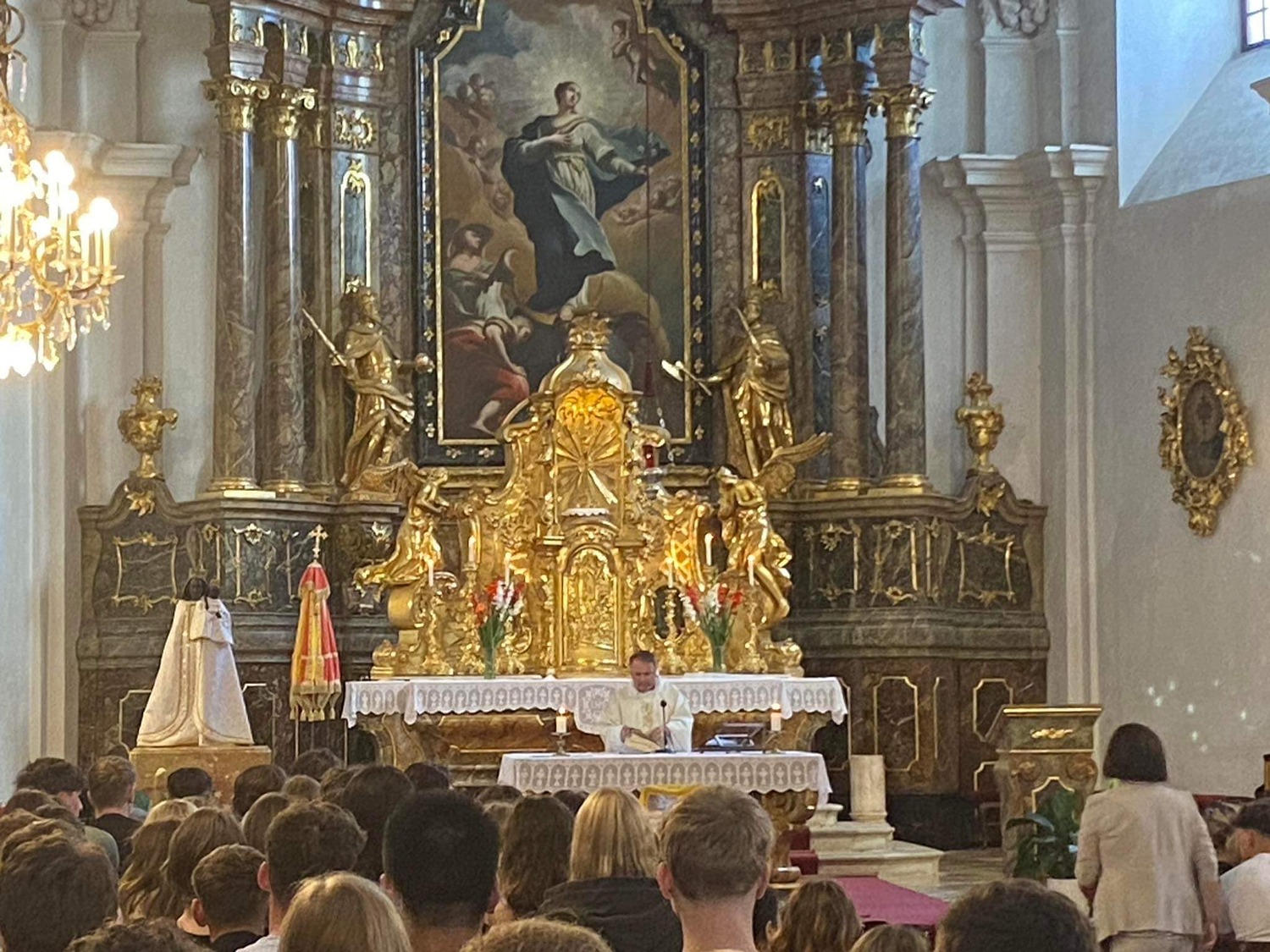 Am 6. September 2023 pilgerte unser Herr Pfarrer in doppelter Funktion mit rund 450 Schülerinnen und Schülern des Theresianums nach Loretto. Einerseits als Pfarrmoderator der Stadt- und Propsteipfarre Eisenstadt-Oberberg, in dessen Gebiet diese hervorragende Schule liegt, andererseits als Militärpfarrer, um mit Schülern, welche in den nächsten Jahren ihren Grundwehrdienst ableisten werden, ins Gespräch zu kommen.