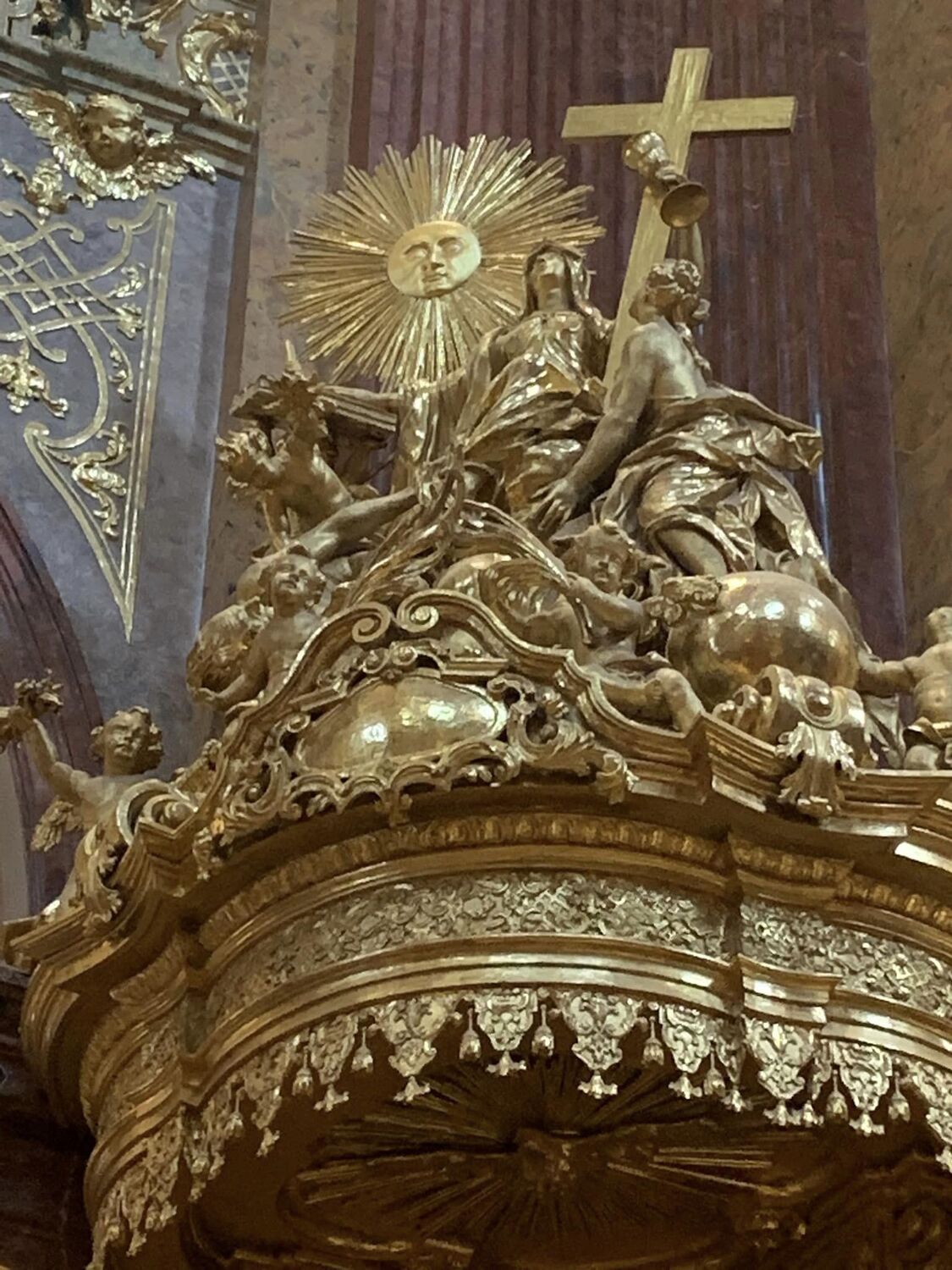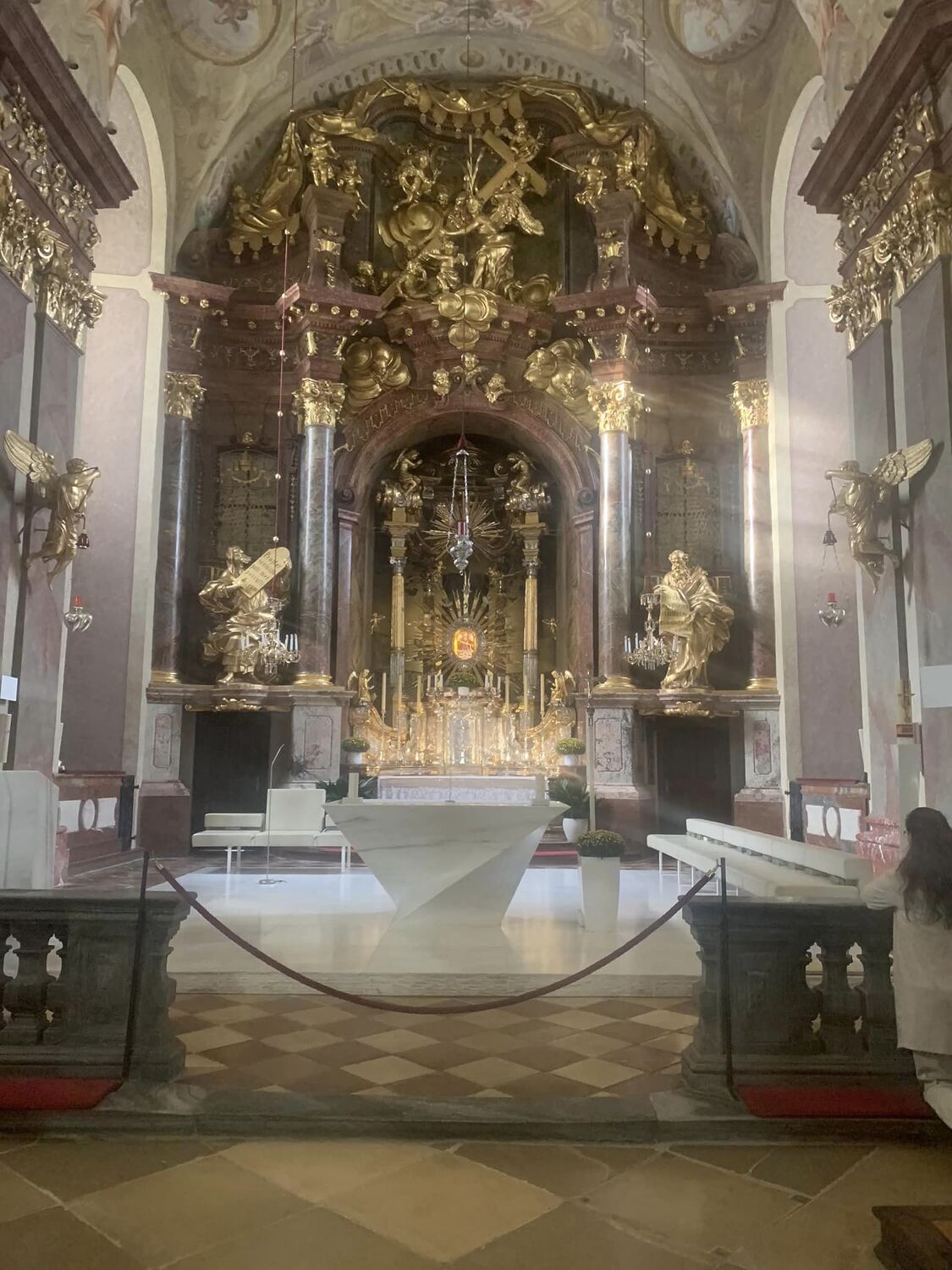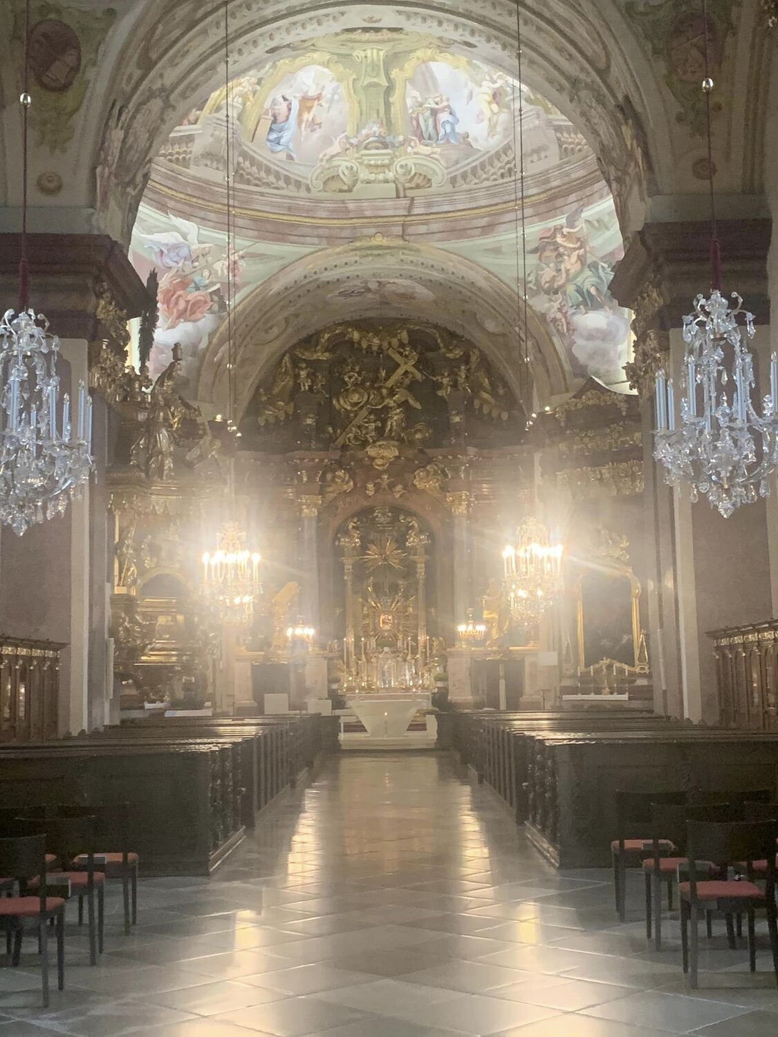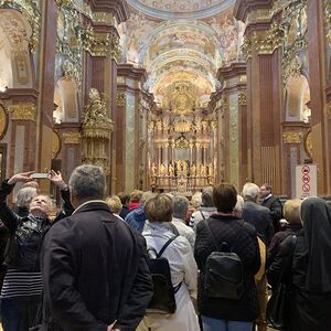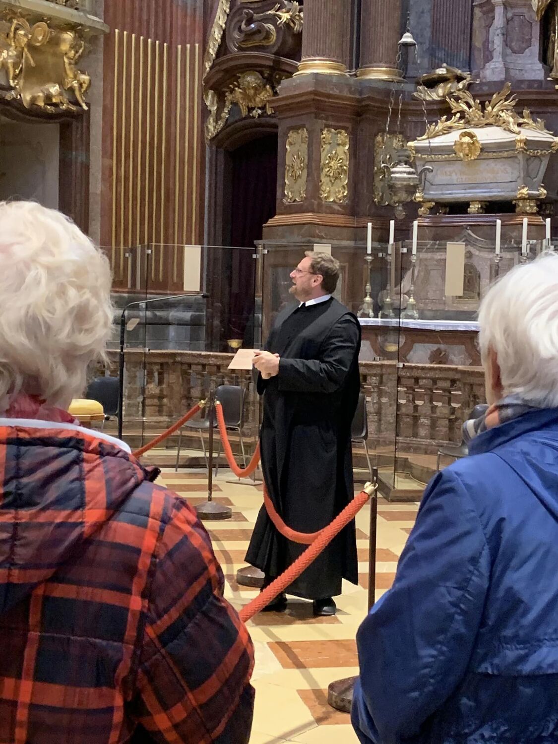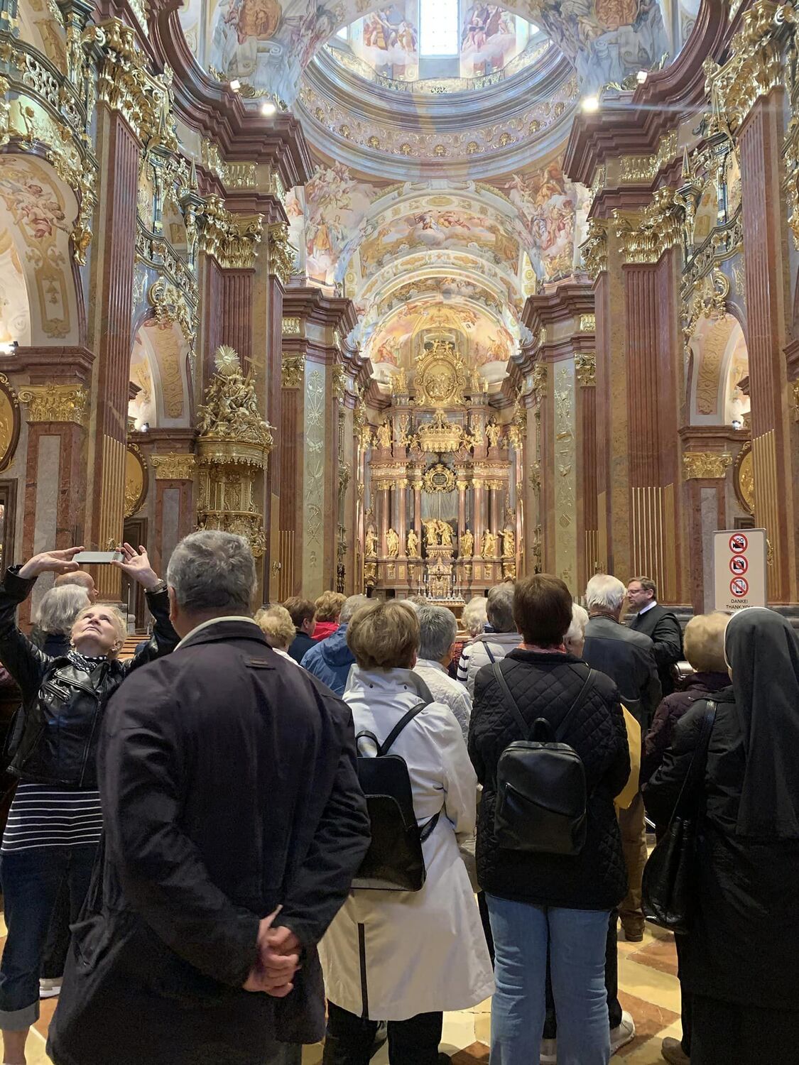 Die erste Station war allerdings das wunderbare Stift Melk. Pater Alois erklärte uns mit launigen Worten nicht nur die Geschichte des Stifts, sondern zeigte uns auch so manches verborgene Detail in der Kirche, bevor es zu einer kleinen Jause in den sonst verschlossenen Innenhof des Stiftes ging.