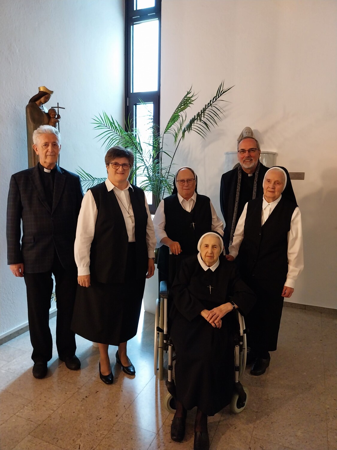 v.l. Spiritual Msgr. Franz Graf, Provinzoberin Sr. Maria Zeitler, Generaloberin Sr. Johanna Vogl, Sr. Andrea Wolf, BV P. Lorenz Voith, Sr. Theodora Unger
