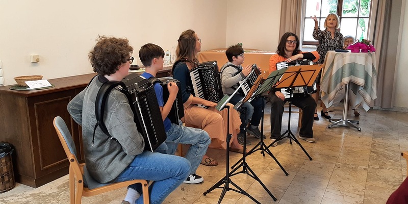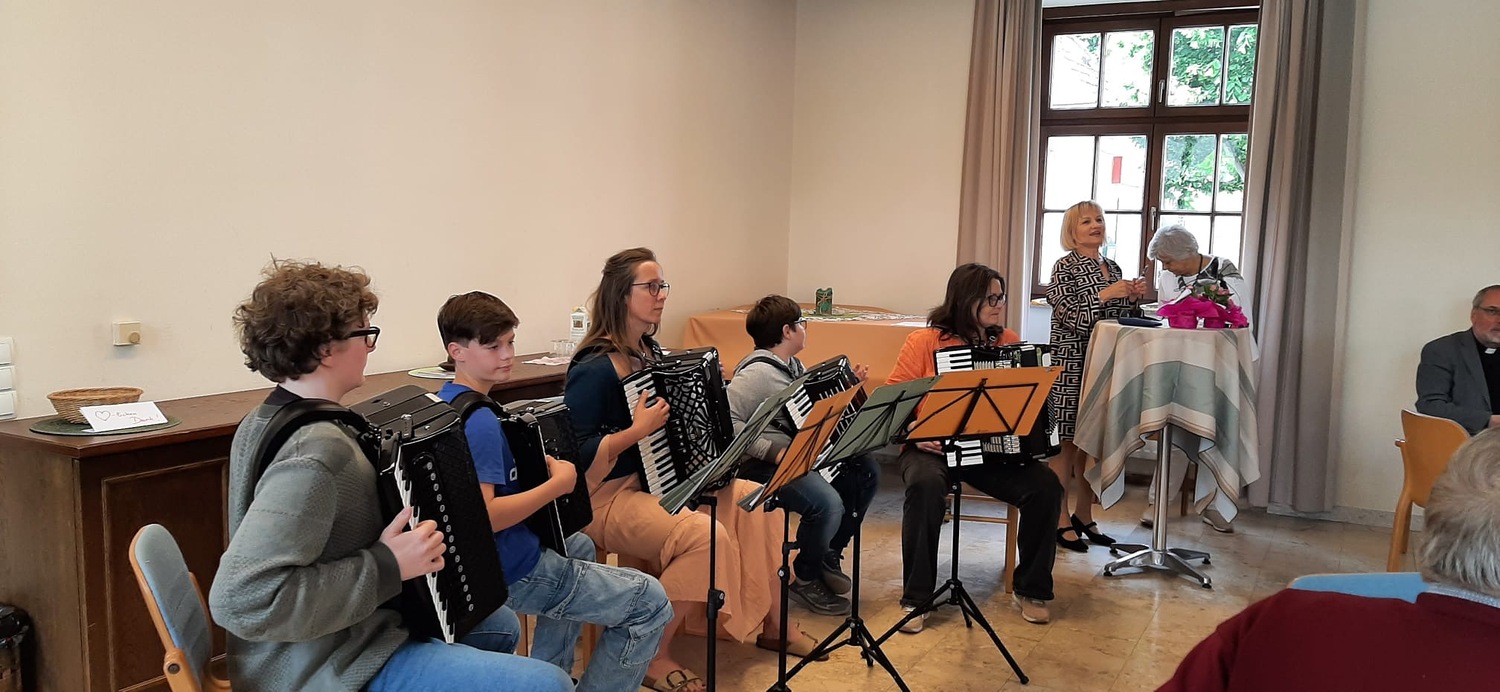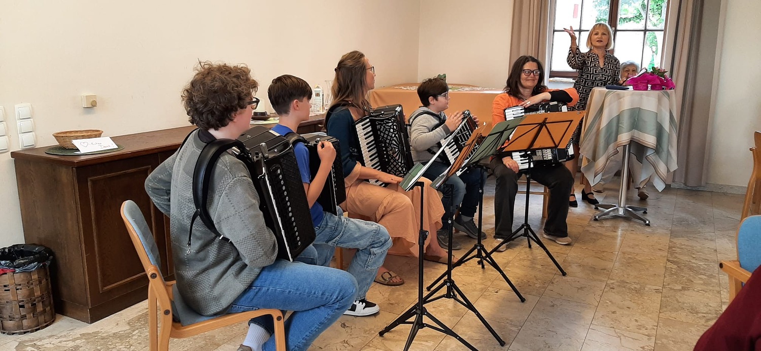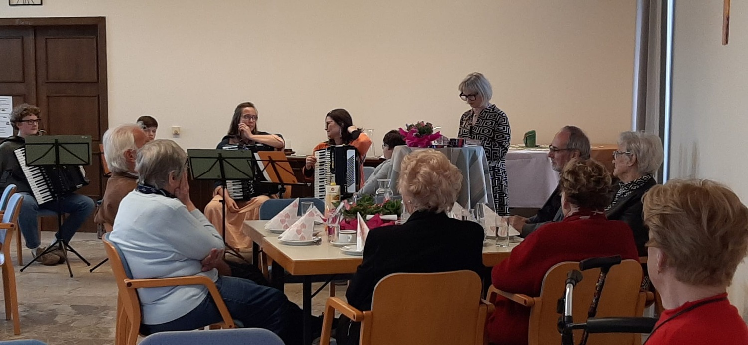 An die 40 Mütter genossen die Musik des Akkordeonensembles der ZMS Eisenstadt unter der Leitung von Fr.Bozana Meidl - Brajic, sowie die Gedichte und Geschichten rund um den Muttertag bei Kaffee und Kuchen!