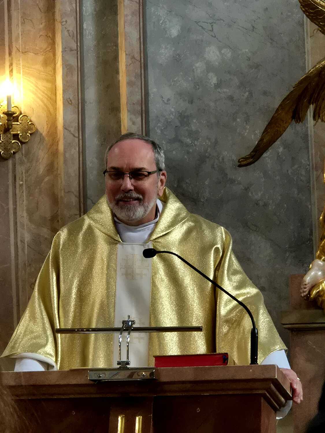 Zum Abschluss segnete Propstpfarrer P. Lorenz Voith Wasser und Salz und spendete den Dreikönigs- bzw. Neujahrssegen, bevor der Gottesdienst mit einem feierlichen Auszug endete.