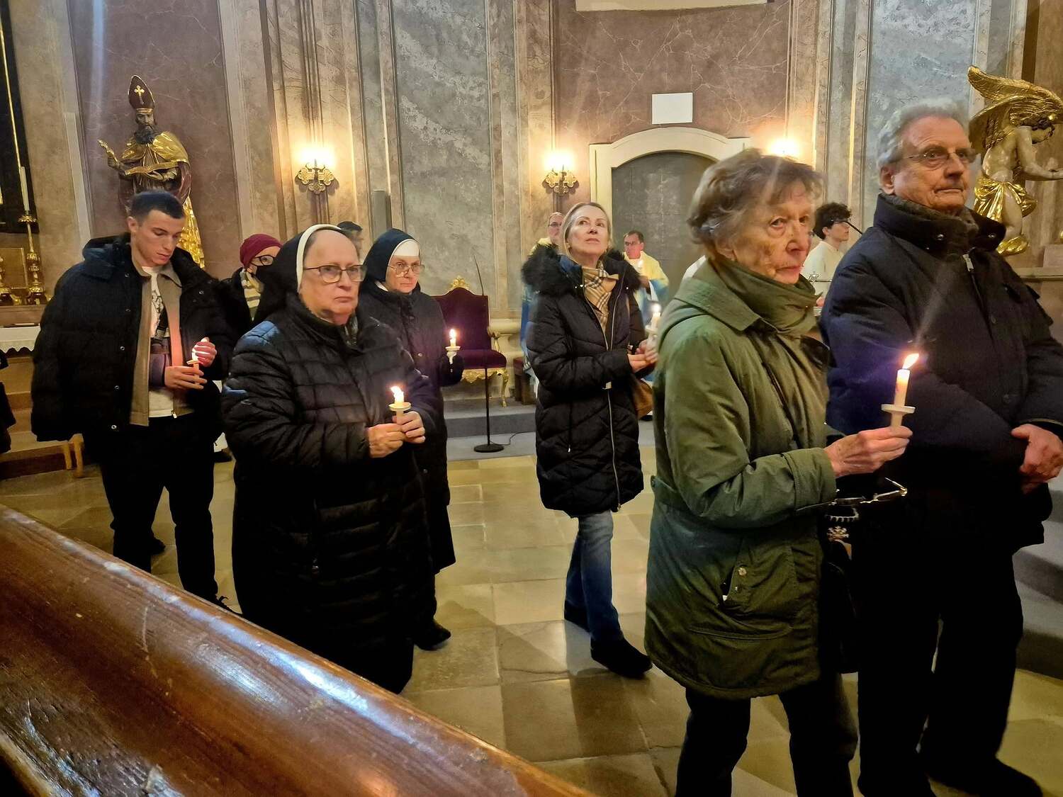 Zu Beginn segnete der Bischof die Kerzen, anschließend zog eine Lichtprozession durch die Kirche.