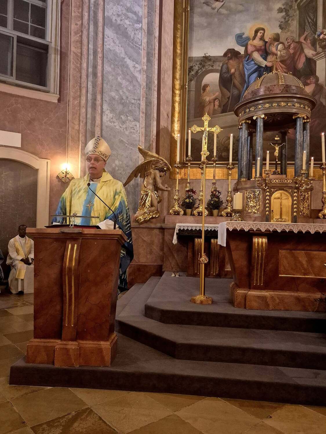 Kerzen drücken Hoffnung aus – die Hoffnung, nicht allein zu sein, auch nicht in der Dunkelheit des Todes. Sie sind immer am Altar zu finden – außer am Karfreitag. Brennende Kerzen symbolisieren: Gott ist da. Gottes Gegenwart ist unter uns. Besonders eindringlich war der Hinweis auf unsere erste Kerze – die Taufkerze. Sie begleitet uns ein Leben lang und erinnert an unser Taufversprechen. Der Bischof nannte sie eine „Provokation“ mit der Frage: