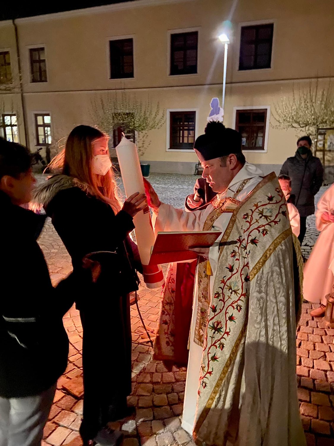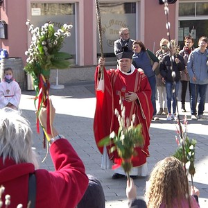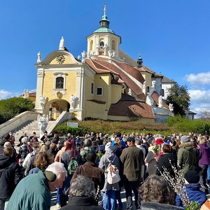 Segnung der Palmzweige vor dem Kalvarienberg;