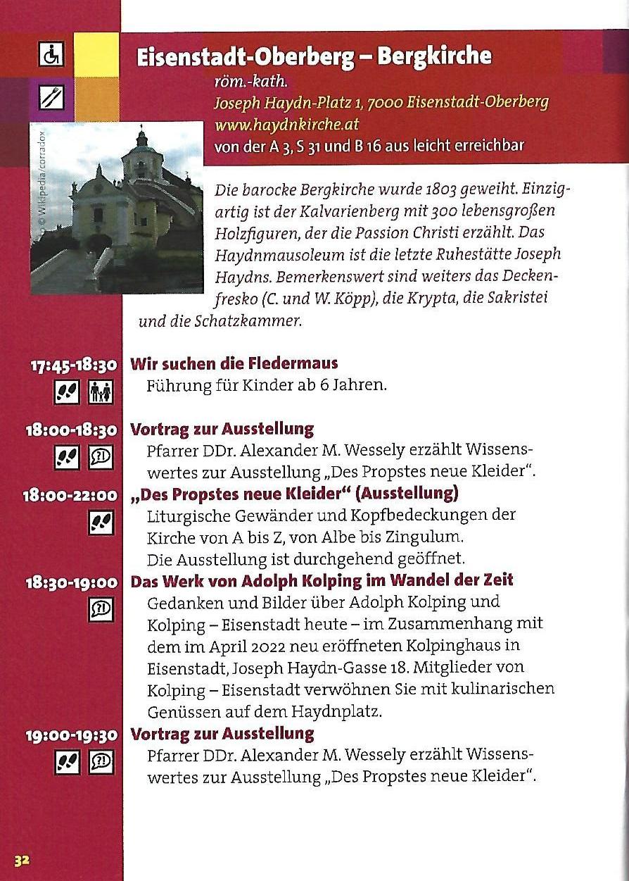 Obwohl der Oberberg die einzige Kirche in Eisenstadt war, die bei der „Langen Nacht der Kirchen“ teilgenommen hat, können wir auf einen sehr erfolgreichen Abend zurückblicken, sei es bei der Kinderführung auf Fledermaussuche, den Führungen in der Paramentenkammer und der Sakristei, den Einblicken ins Kolpingwerk, einem gelungenen Konzert und schließlich der Turmbesteigung und der Gruftführung....