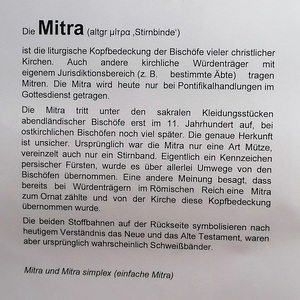 Seit der Langen Nacht der Kirchen am 10. Juni 2022 sind liturgische Gewänder und Kopfbedeckungen der Kirche von A bis Z, von Albe bis Zingulum in der Ausstellung "Des Propstes neue Kleider" in der Schatzkammer der Bergkirche Eisenstadt-Oberberg zu sehen.