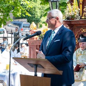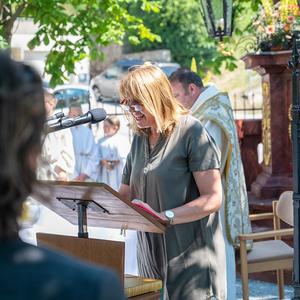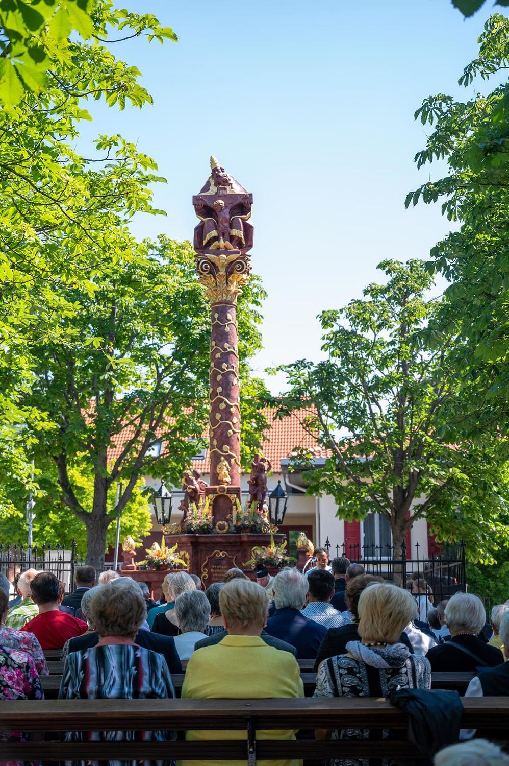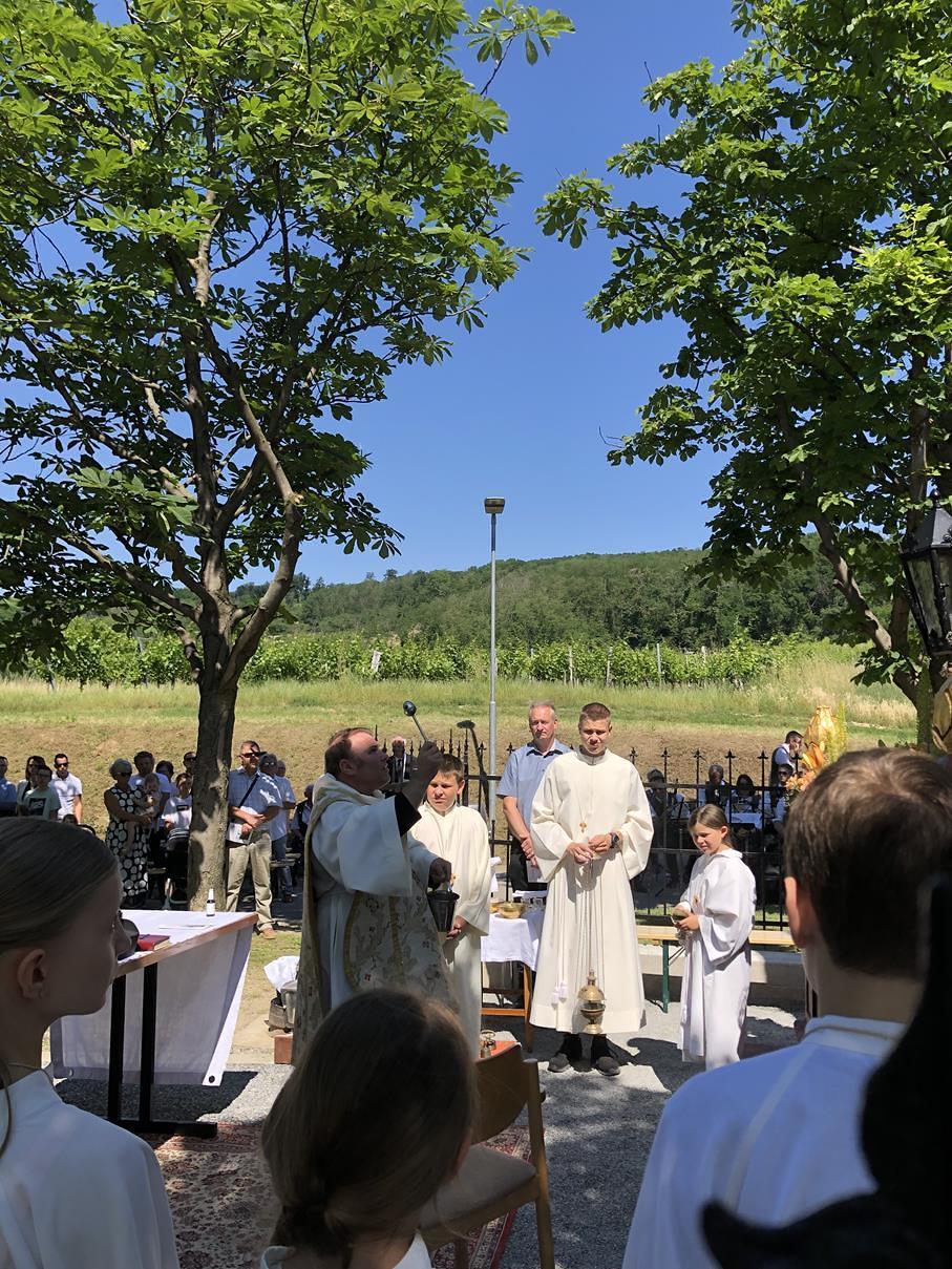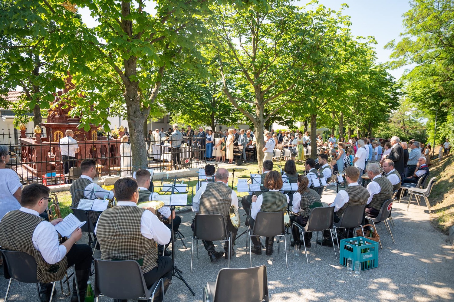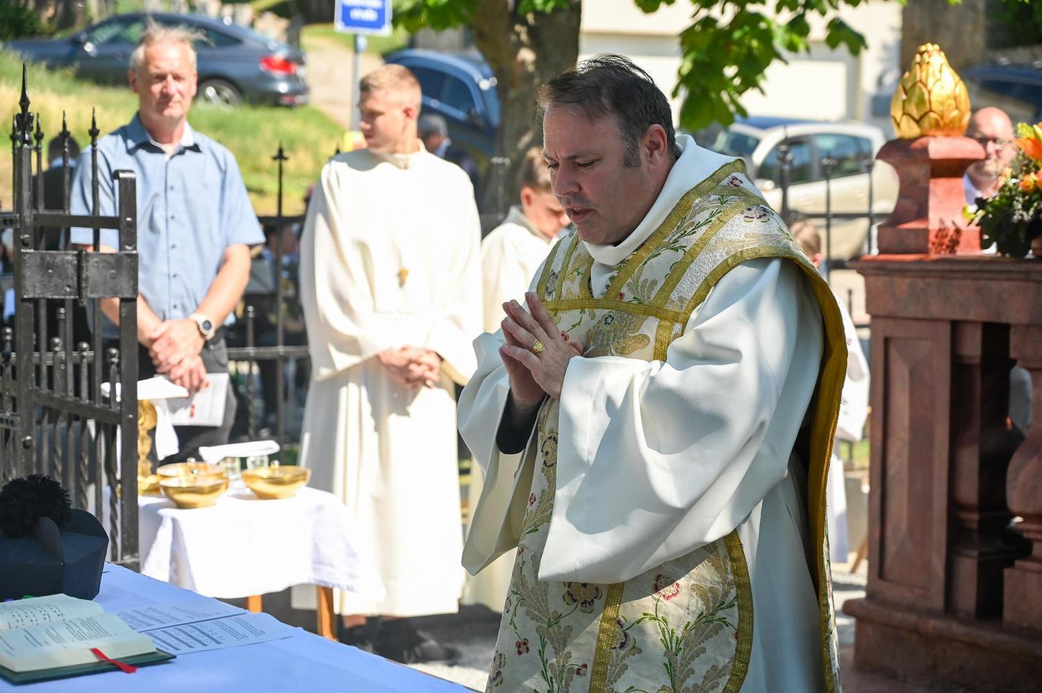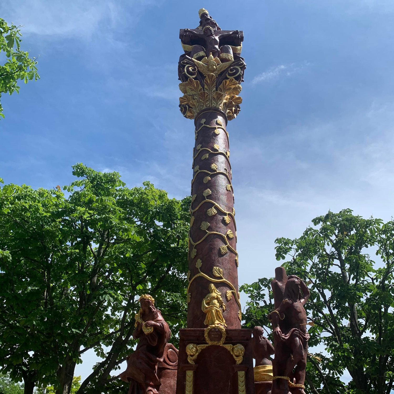 Beim Festgottesdienst des Pfarrverbandes Eisenstadt-Oberberg und Eisenstadt-Kleinhöflein am 12. Juni 2022  wurde die restaurierte Dreifaltigkeitssäule von unserem Pfarrer Alexander Wessely gesegnet.
