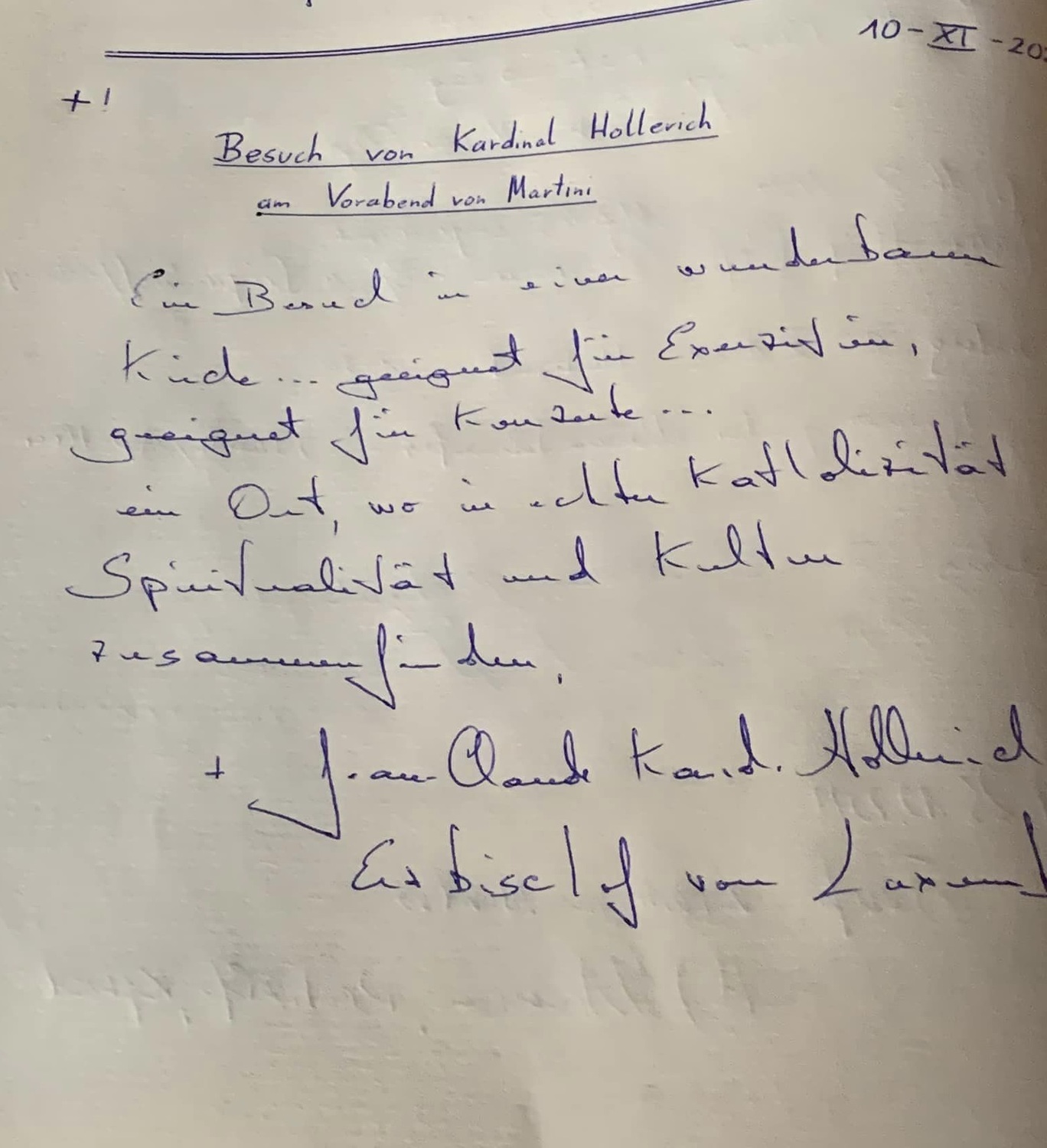Am Vorabend von Martini, am 10. November 2022 besuchte der Erzbischof von Luxemburg, Kardinal Jean - Claude Hollerich, auch unsere Bergkirche. Mit folgenden Worten verewigte er sich in unserem Gästebuch:
