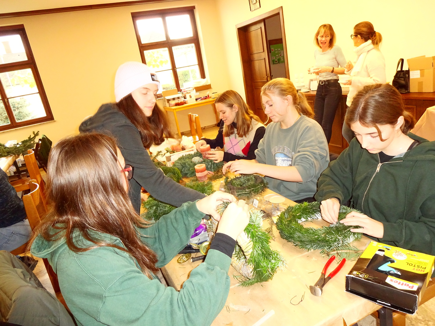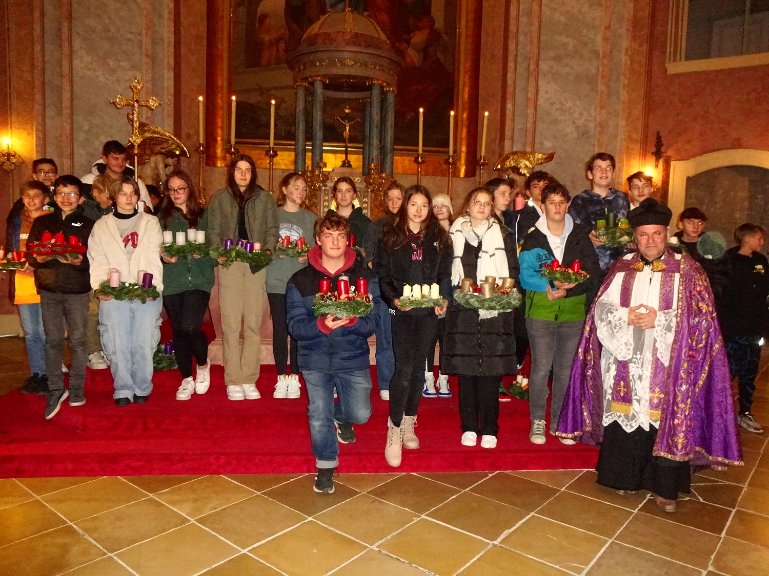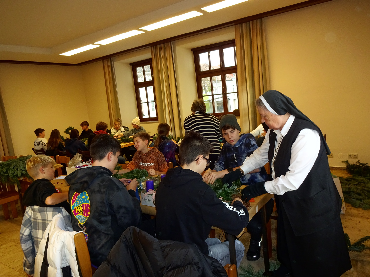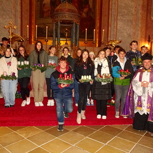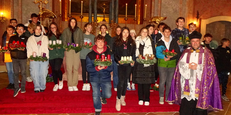 Eine schöne Einstimmung in den Advent war das Adventkranzflechten im Pfarrheim. Viele Firmlinge und auch einige Erwachsene waren mit Begeisterung dabei. Stolz hielten sie den kunstvoll gestalteten Kranz. Nach einer Stärkung mit Kuchen und Tee fand in der Kirche die Segnung der Kränze statt.