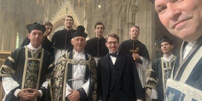Heute und morgen (11. + 12.9.2023) wechselt unser Herr Pfarrer die Sedile des Propstpfarrers am Oberberg mit jener des Propstpfarrers der Wiener Votivkirche. Ob er deshalb - sogar in schwarzen...