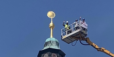 Auf der Kuppel der Kreuzkapelle erstrahlt ab heute wieder die gewaltige goldene Sonne...