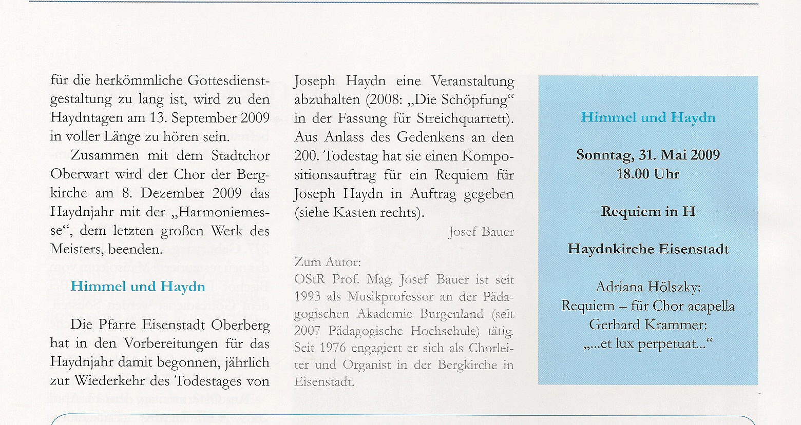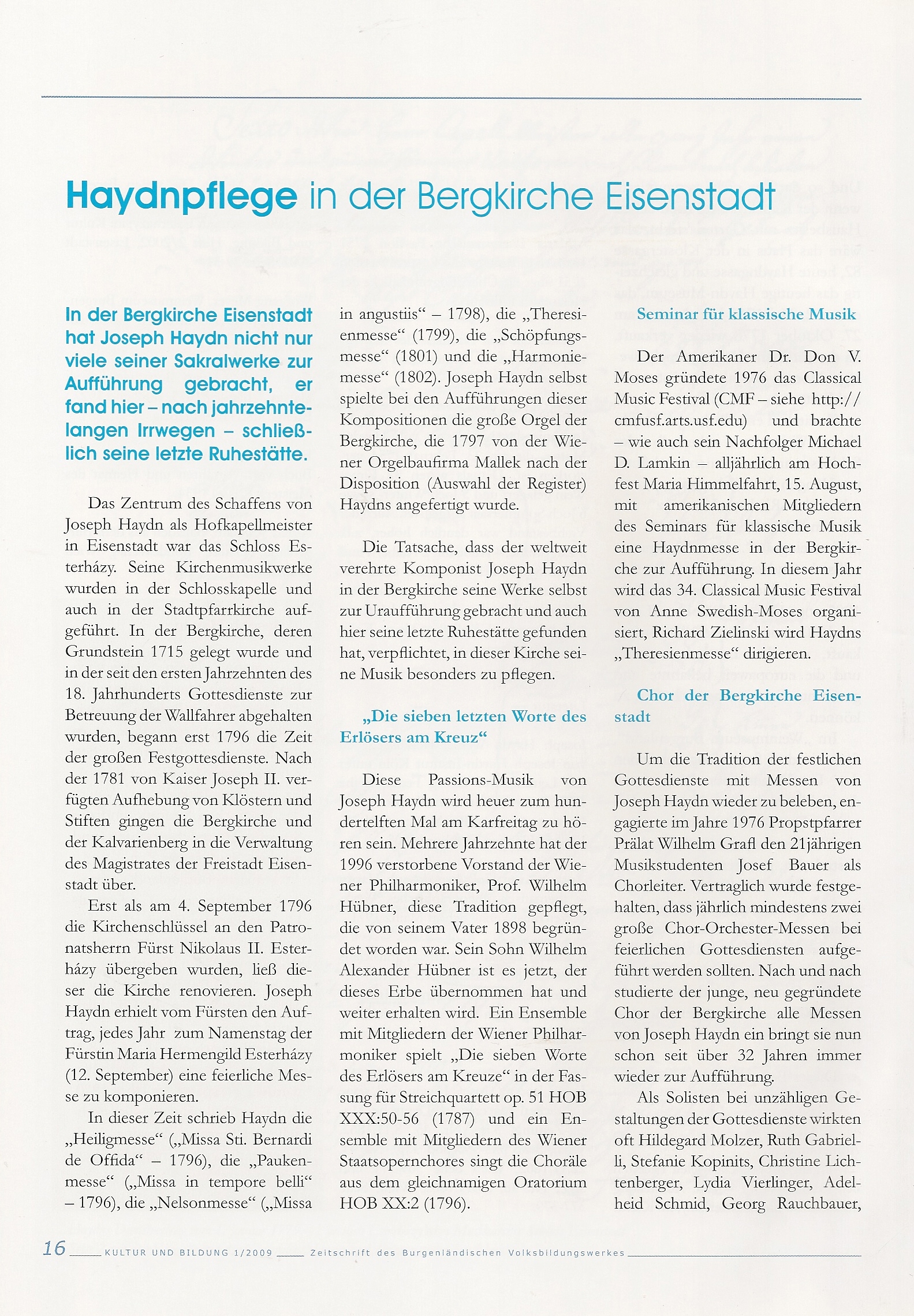 In der Zeitschrift "KULTUR UND BILDUNG" des Burgenländischen Volksbildungswerkes Nr. 1/2009 wurde dieser Artikel als Beitrag zum HAYDNJAHR 2009 veröffentlicht.