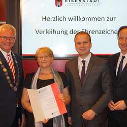 Am 30. April 2018 wurden im Eisenstädter Rathaus nach einem Beschluss des Gemeinderates Ehrenzeichen der Landeshauptstadt Freistadt Eisenstadt an langjährige Sängerinnen und Sänger des Chores der Haydnkirche verliehen.