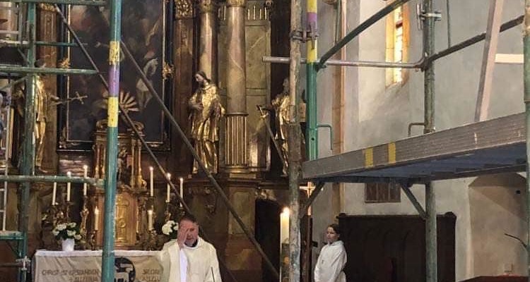 Befundung für Restaurierung der Kirche - Heilige Messe trotz Gerüst