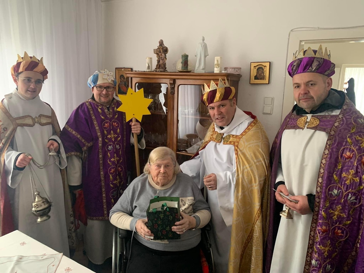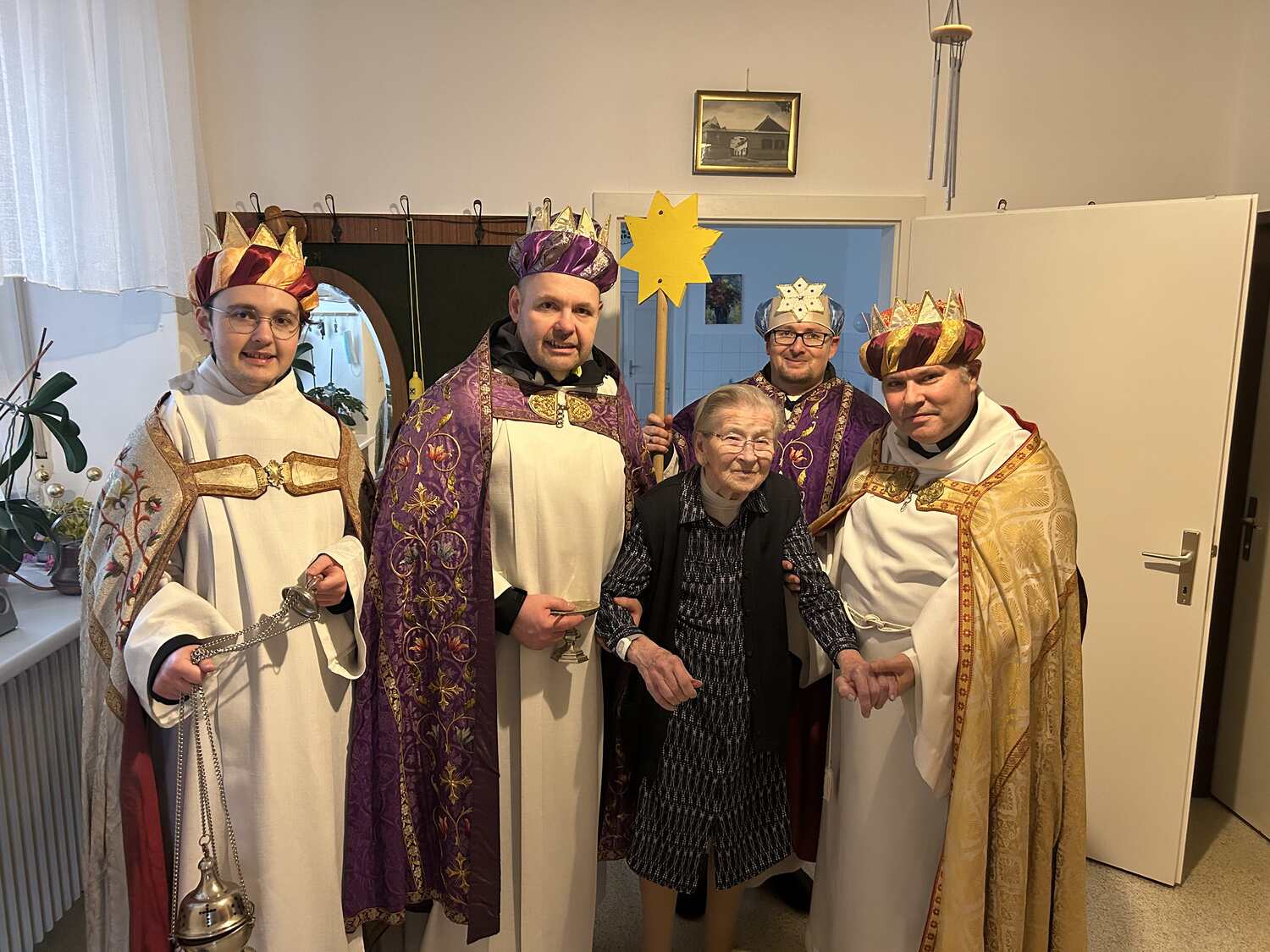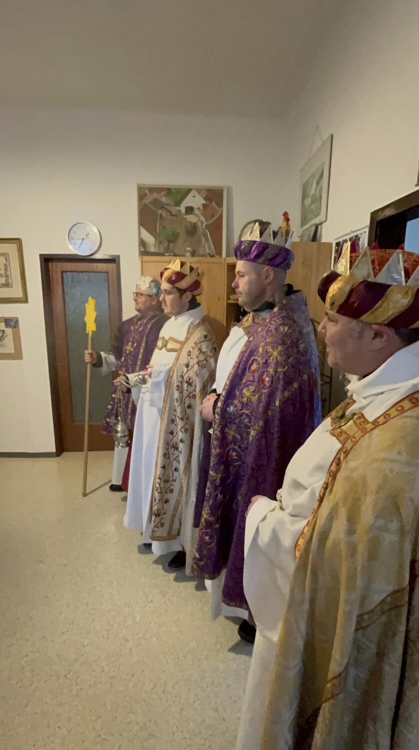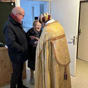 Am Nachmittag war auch eine Erwachsenen Gruppe mit Pfarrer Alexander unterwegs. Besucht wurden ältere und kranke Pfarrangehörige, für die der Weg in die Kirche schon beschwerlich ist. Außerdem wurde auch zu zwei runden Geburtstagen gratuliert.
