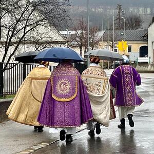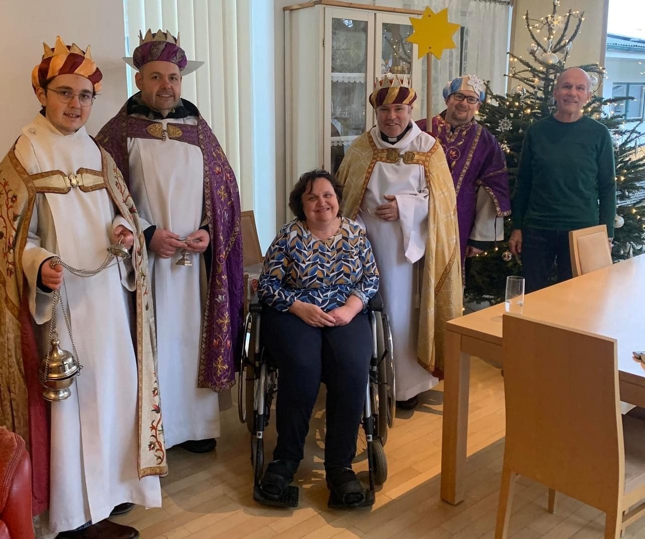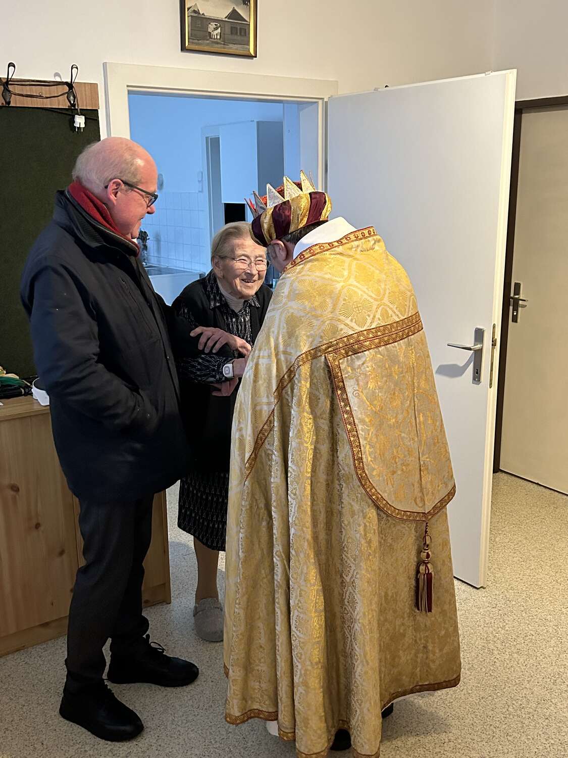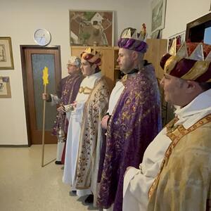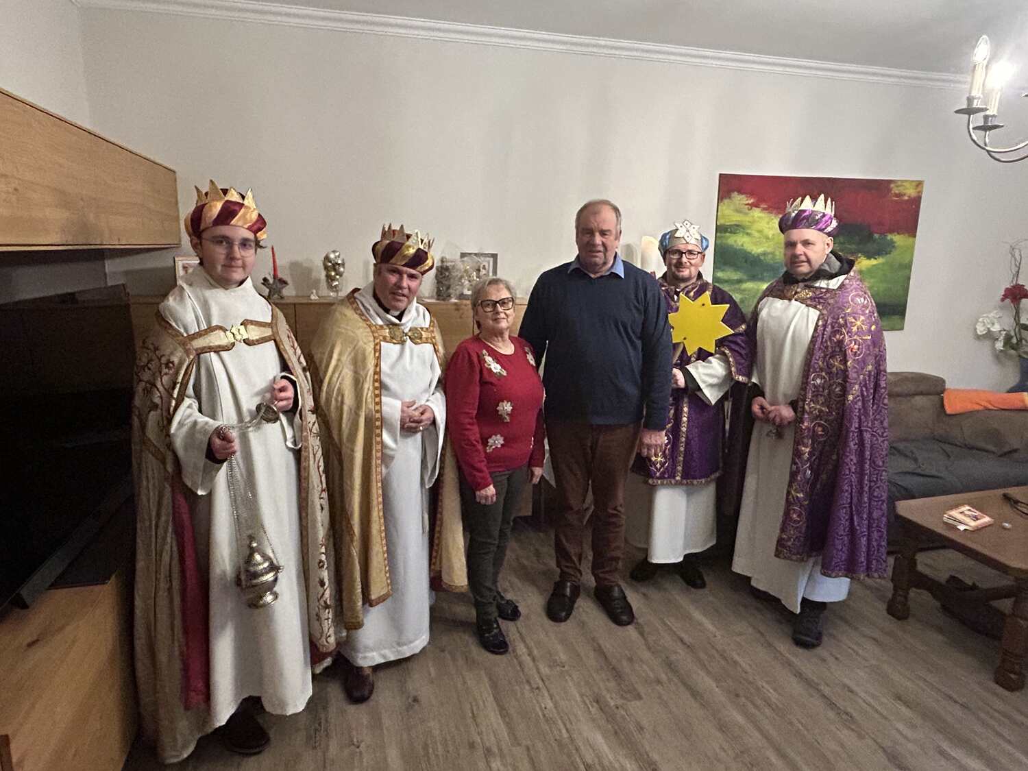 Am Nachmittag war auch eine Erwachsenen Gruppe mit Pfarrer Alexander unterwegs. Besucht wurden ältere und kranke Pfarrangehörige, für die der Weg in die Kirche schon beschwerlich ist. Außerdem wurde auch zu zwei runden Geburtstagen gratuliert.