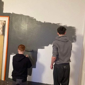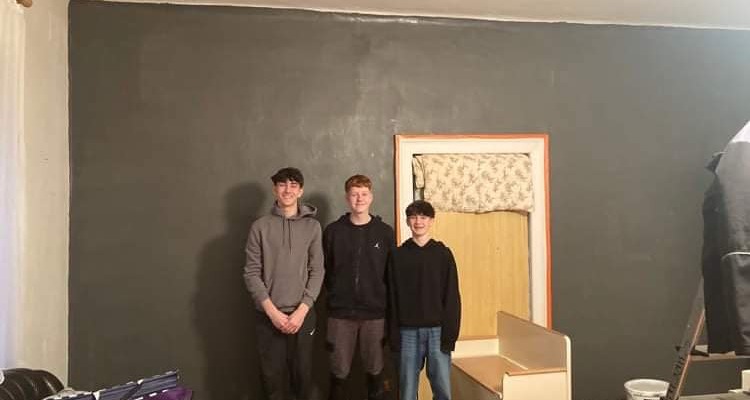 Für eine Wand wurde grau ausgewählt, alle anderen werden weiß gestrichen, natürlich durch unsere Jugend selbst.