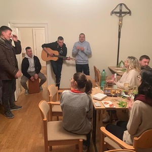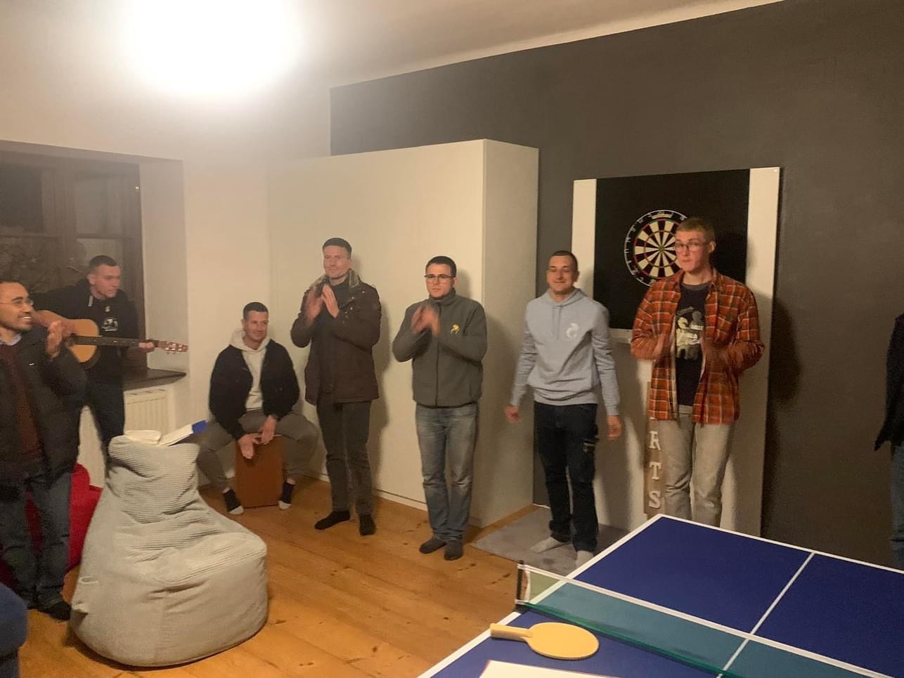 18:45 Uhr Aufnahme des Probebetriebs des Jugendraums, dabei wurde auch gleich die Gemeinschaft Cenacolo dazu eingeladen mit uns zu essen.