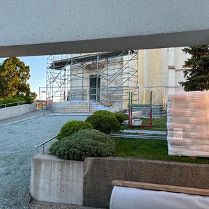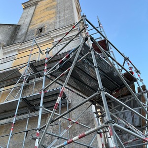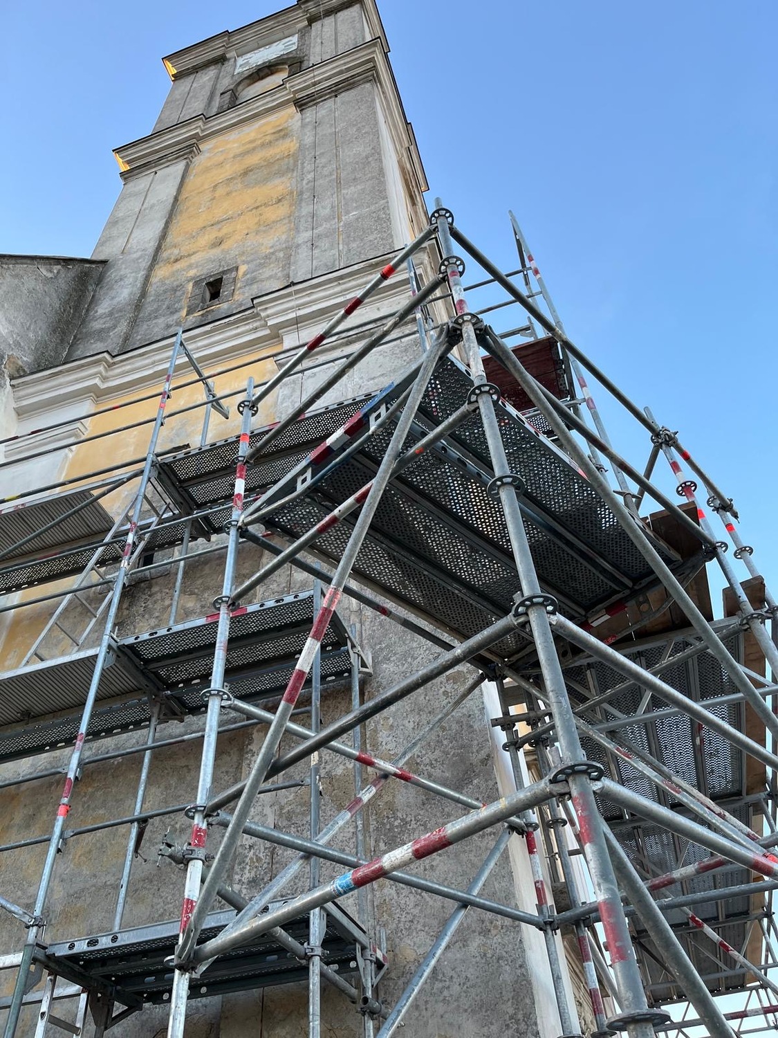 Es ist großartig, dass trotz des starken Windes, aber bei Sonnenschein mit dem Aufbau des Gerüsts begonnen werden konnte. Hoffentlich bleibt das Wetter stabil, damit die Arbeiten gut voranschreiten.