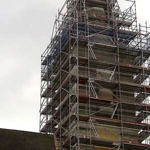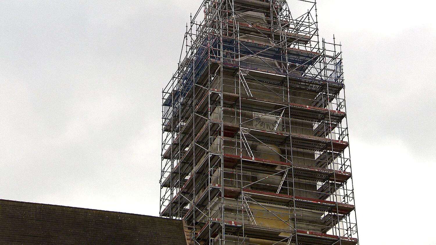 Der Kirchturm von Kleinhöflein, einem Ortsteil von Eisenstadt, wird umfassend saniert und renoviert. Zwei Wochen lang wurde nur das Gerüst aufgebaut, nun konnte mit den Arbeiten begonnen werden.