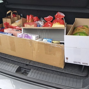 Beim Erntedankfest am Sonntag waren die Körbe vor dem Altar leer. Diese wurden mit mitgebrachten Gaben befüllt, welche heute mit einer kleinen Spende an die Pannonische Tafel übergeben wurden.