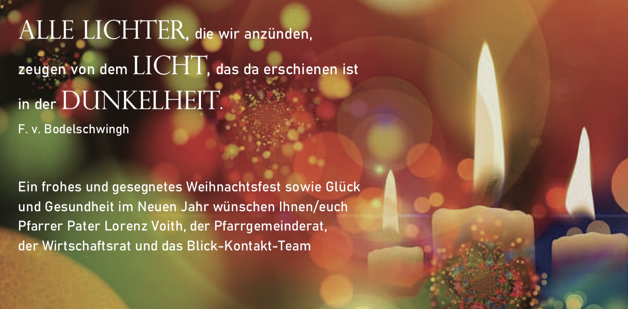Propstpfarrer Pater Lorenz Voith CSsR, sein Pfarrteam und die Pfarrgemeinderäte und Wirtschaftsräte des Pfarrverbandes wünschen gesegnete Weihnachten und ein gutes Jahr 2025!