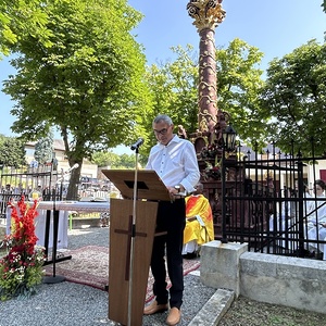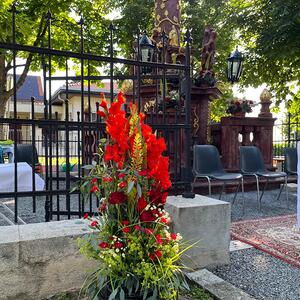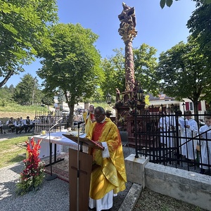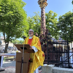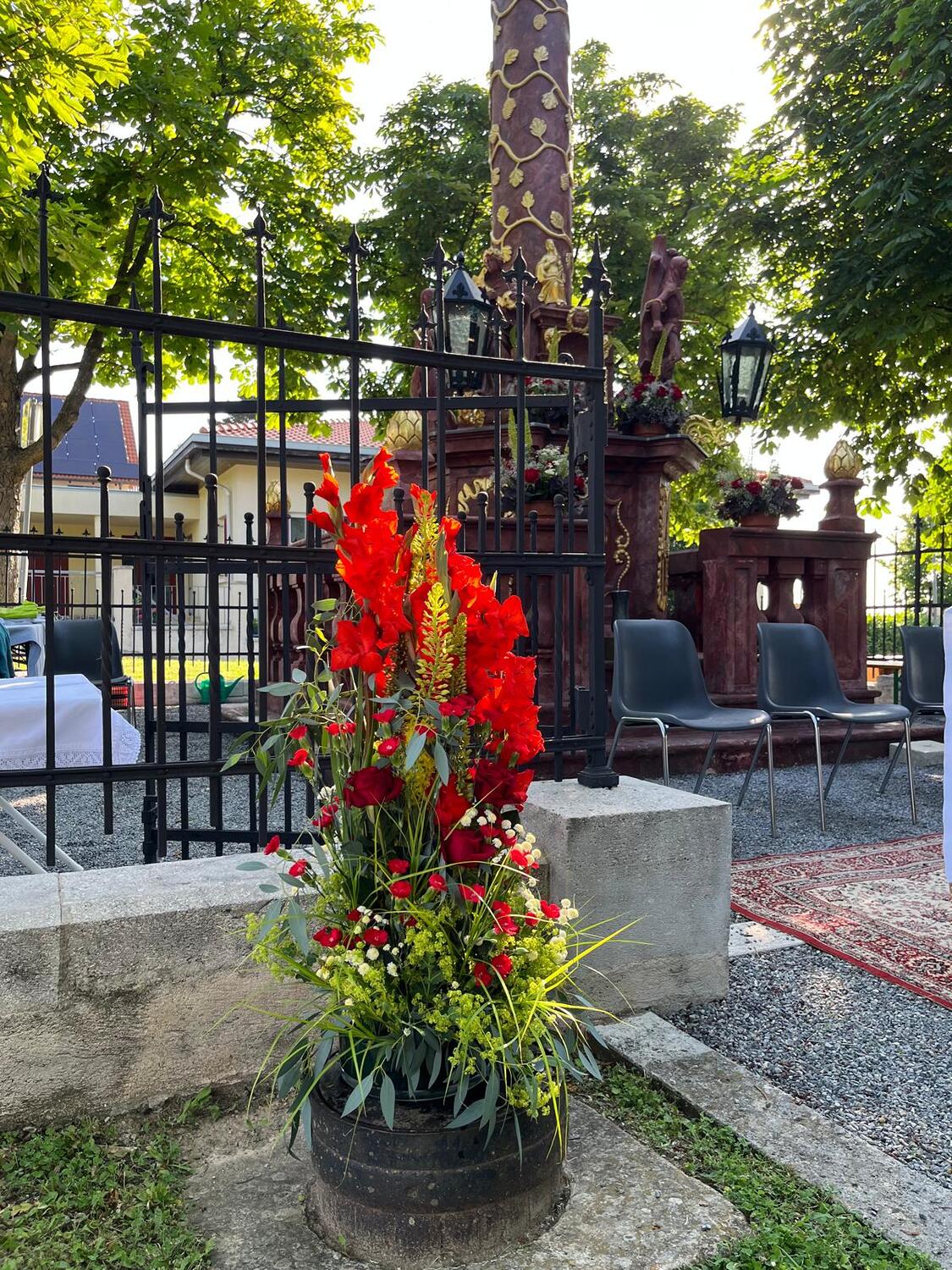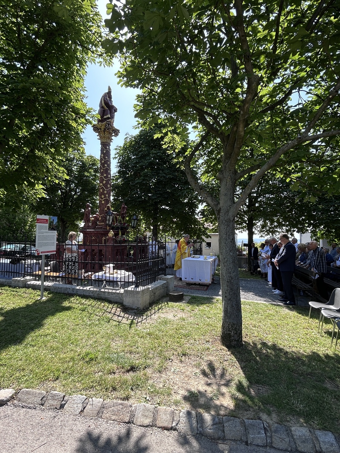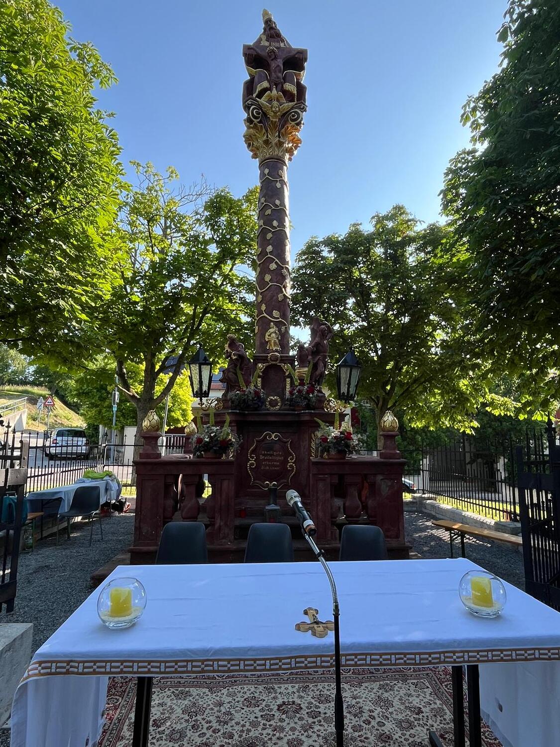 Bei strahlendem Wetter feierten wir heute im Pfarrverband eine besonders festliche hl. Messe im Freien – vor der eindrucksvollen Kulisse unserer Dreifaltigkeitssäule.