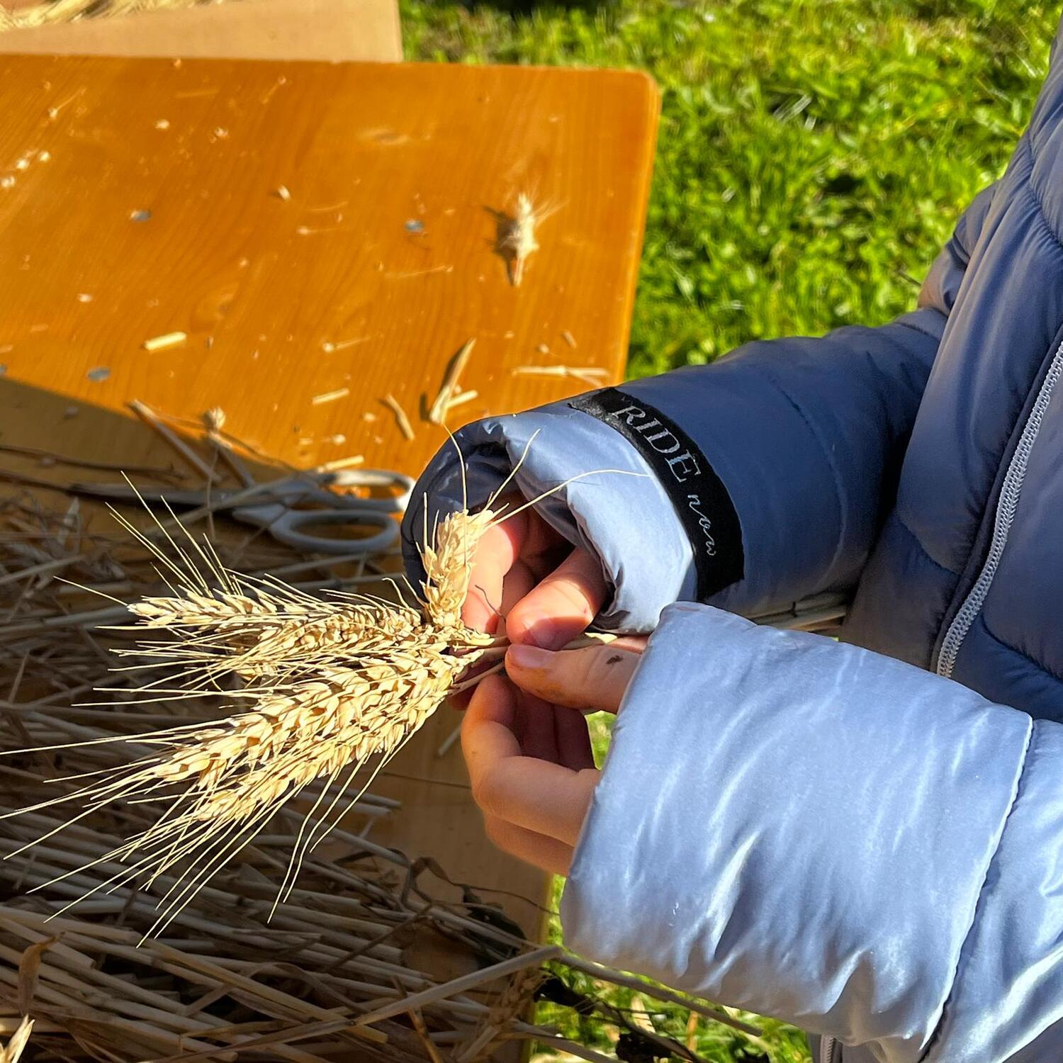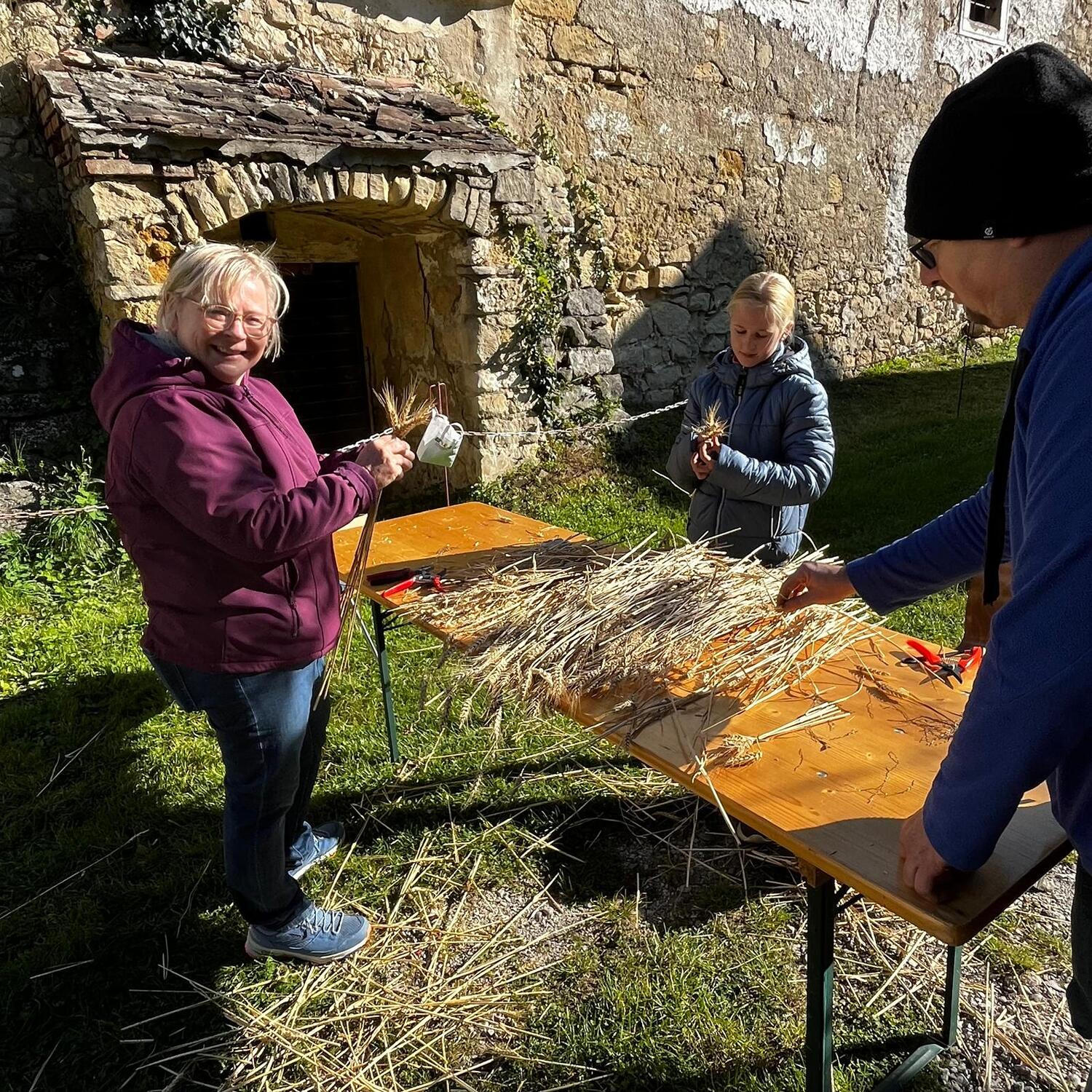 Die Ähren sind geschnitten und getrocknet, die Ährenbüscherl werden jetzt gebunden – viele helfende Hände und zahlreiche Stunden Arbeit sind nötig, damit unsere Krone zum Erntedank in voller Pracht erstrahlt.