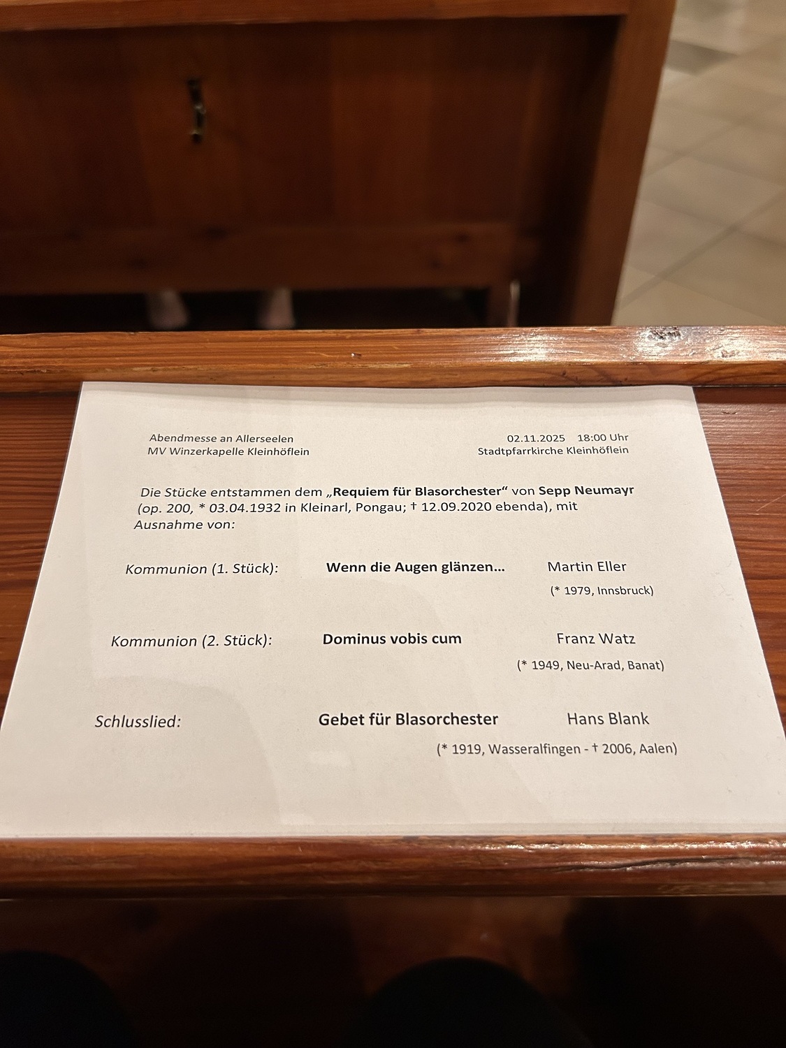 Ein herzliches Dankeschön an den MV Winzerkapelle Kleinhöflein unter der Leitung von Sebastian Pfann, für die würdevolle musikalische Gestaltung, die der Feier einen besonders festlichen und tröstenden Rahmen verlieh.