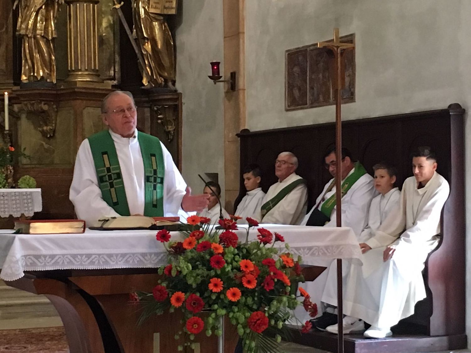 Im Rahmen des Gottesdienstes am Sonntag, 2. September 2018 gratulierte Pfarrer Mag. Wilhelm A. Ringhofer Pfarrer Mathias Reiner zu seinem 75. Geburtstag. Die Agape findet beim Erntedankfest am 14. Oktober statt.