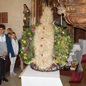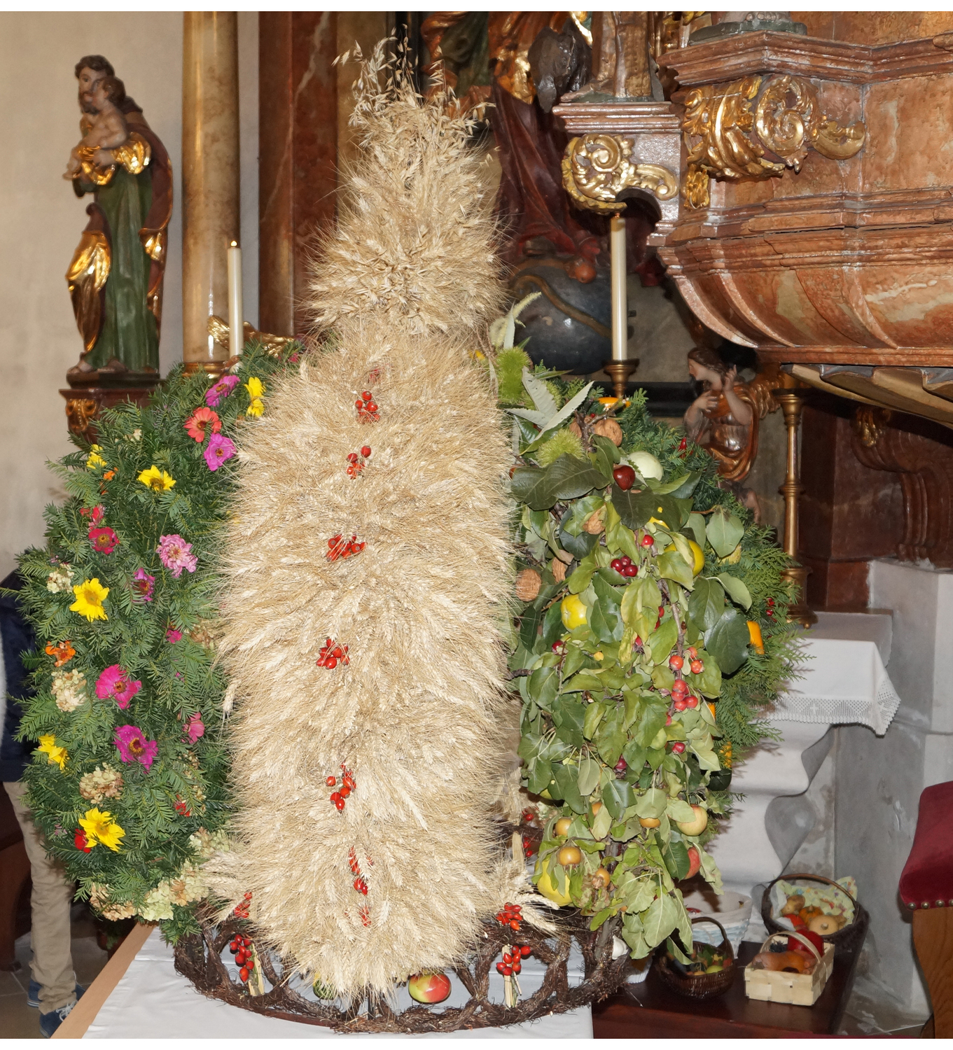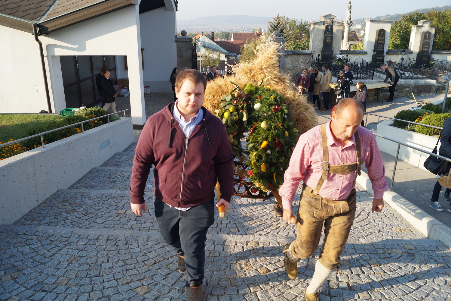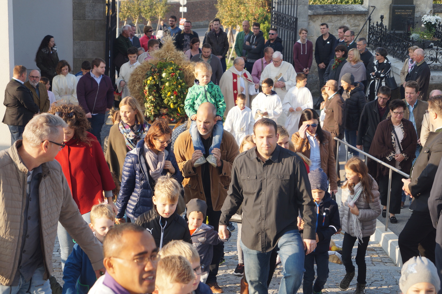 Am Sonntag, 14. Oktober 2018 fand das traditionelle Erntedankfest mit Segnung der Erntedankskrone und anschließender Agape statt. Der Gottesdienst wurde vom Vitus-Chor Kleinhöflein und die Agape von der Winzerkapelle Kleinhöflein musikalisch umrahmt. Bei der Agape wurde auch noch auf den 75. Geburtstag von Pfarrer i.R. Mathias Reiner angestoßen.