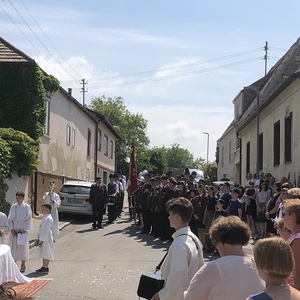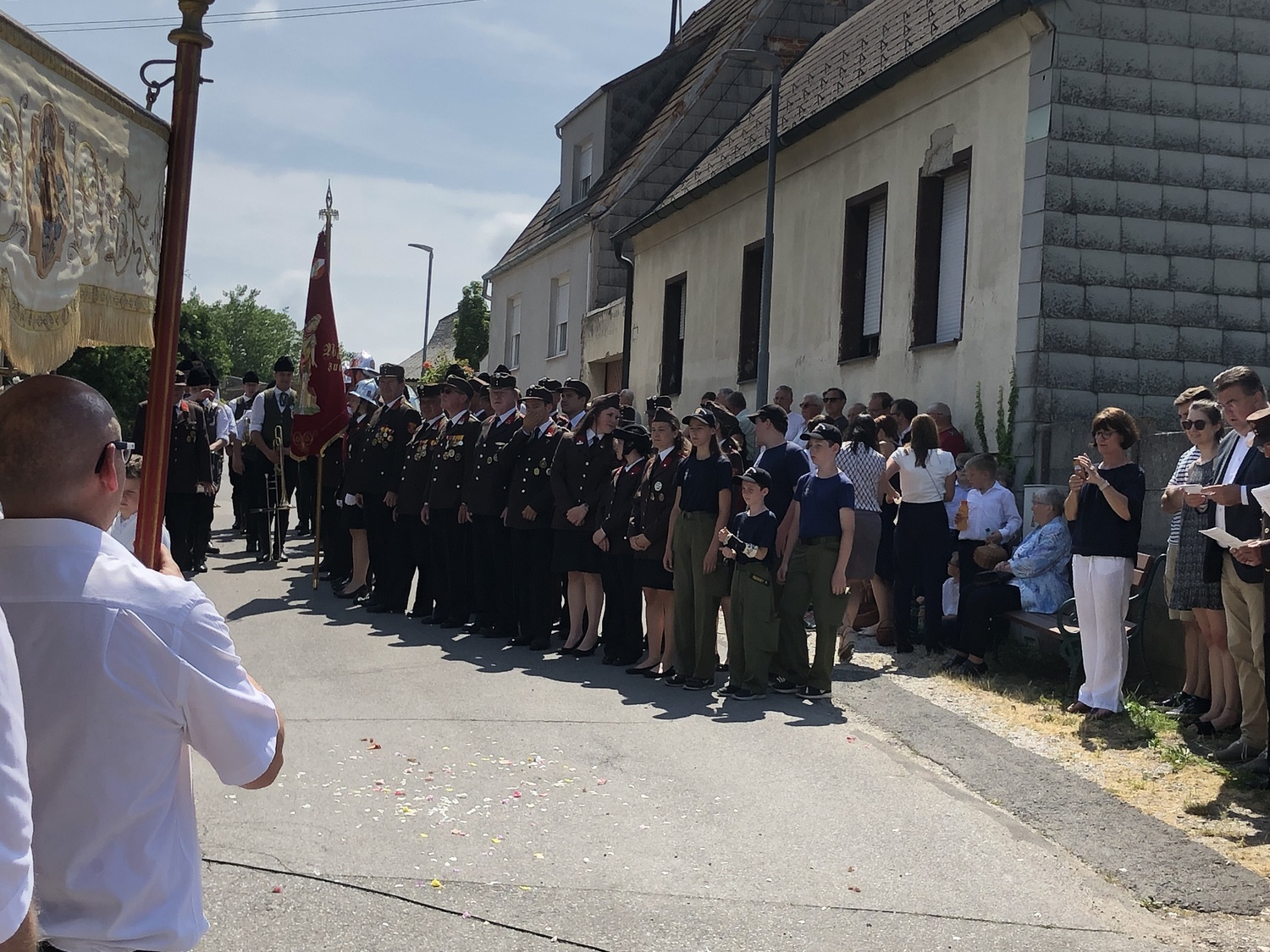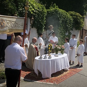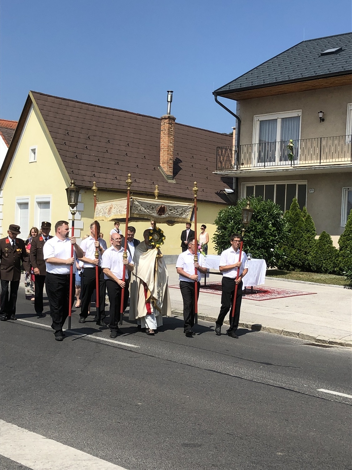 Zu Fronleichnam bezeugen wir unseren Glauben and die leibliche Gegenwart Jesu Christi im Saktrement der Eucharistie. Der Name des Festes leitet sich aus dem Mittelhochdeutschen "vrone licham" - Leib des Herren ab. Das Brauchtum der Fromleichnamsprozession, bei der der Leib Christi in einer Monstranz durch die Straßen getragen wird, stammt aus dem Mittelalter. Dabei werden auch der Flurschutz, Feldweihen und Wetterbitten dargebracht. Bei der Prozession nahmen traditionell Feuerwehr und Musikverein, sowie die Erstkommunionskinder und viele Gläubige teil.