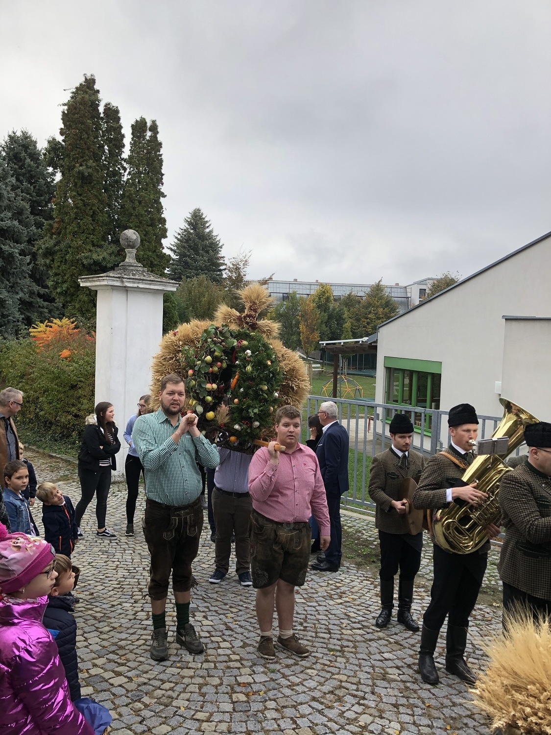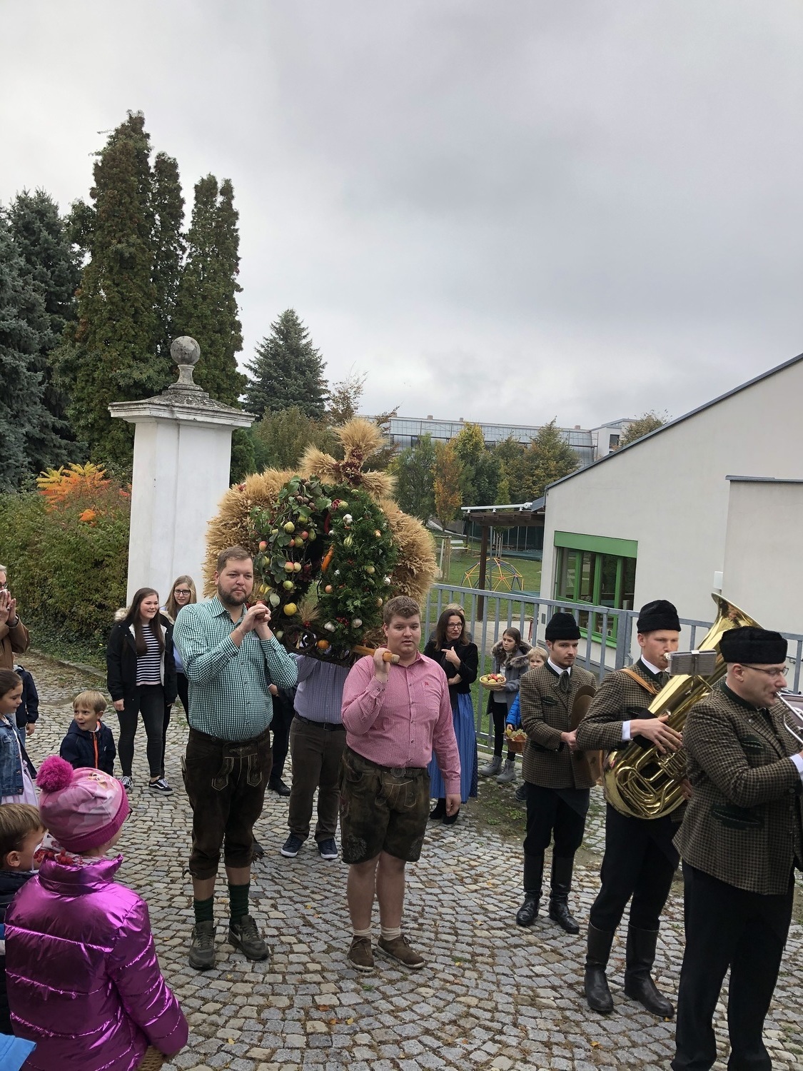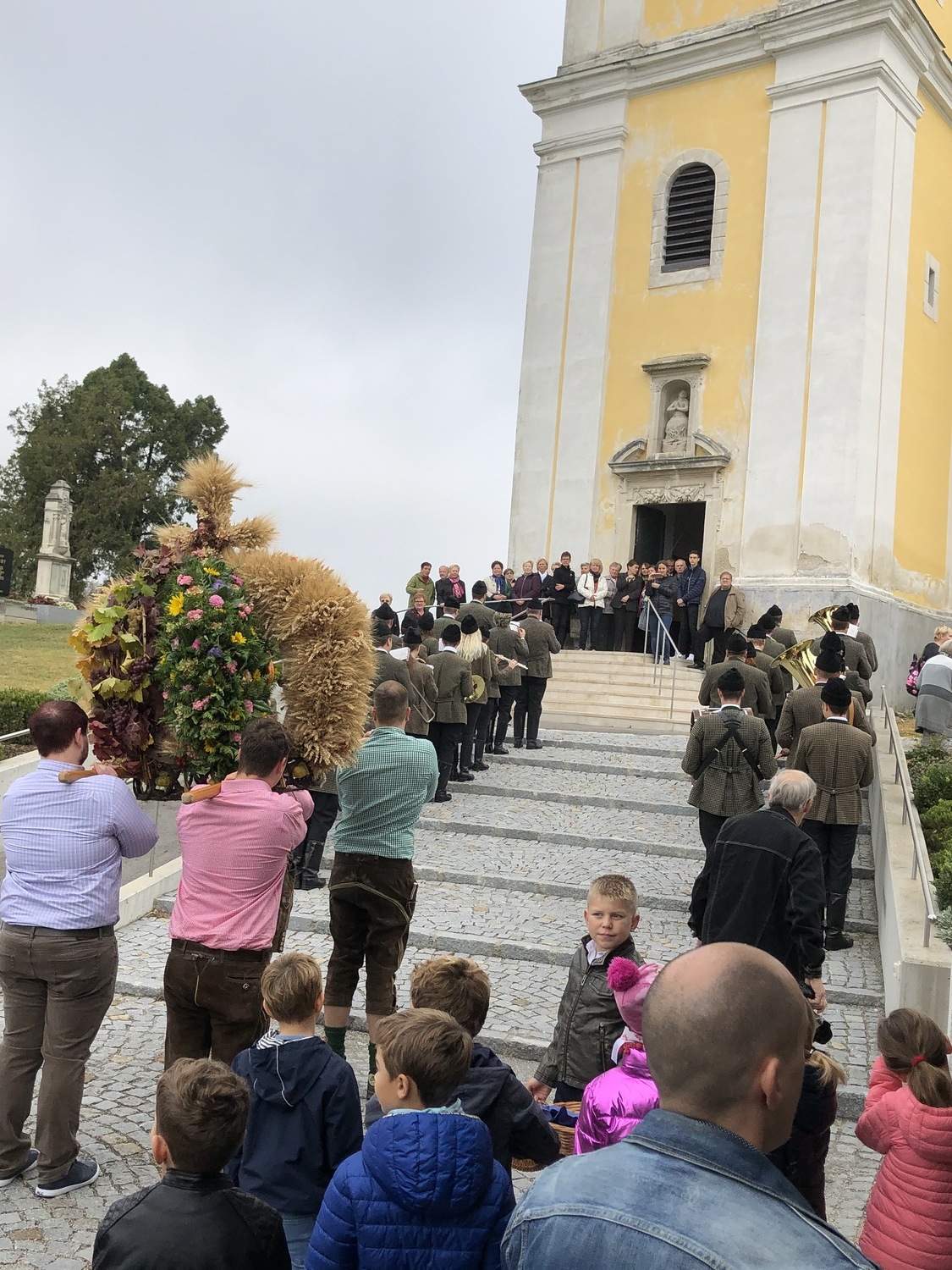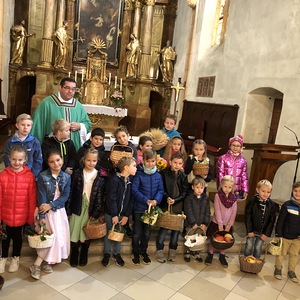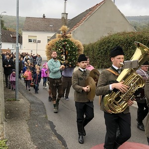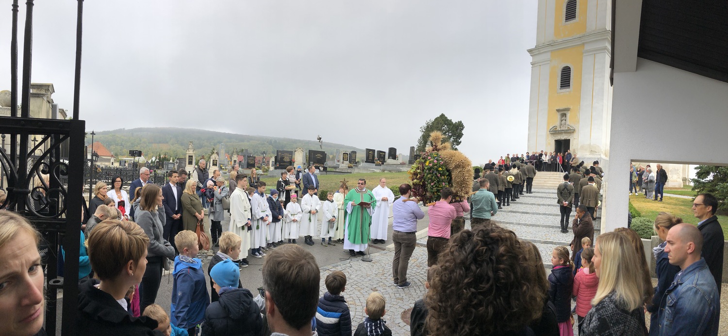Schön herbstlich geschmückt und mit einer großen Erntedankkrone wurde diese Feier am Sonntag, dem 20. Oktober in der Pfarrkirche Kleinhöflein gestaltet. Orgel, Kirchenchor, Pfarrverband und Blasmusikkapelle trugen musikalisch zur Feier bei. Viele feierten das Fest des Dankes mit. Die Kinder und die Volksschulkinder, die sich auf den Weg der Vorbereitung zur Erstkommunion machen, brachten ihre bunten Obstkörbchen zum Altar.