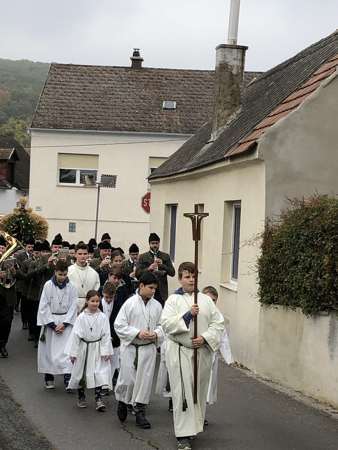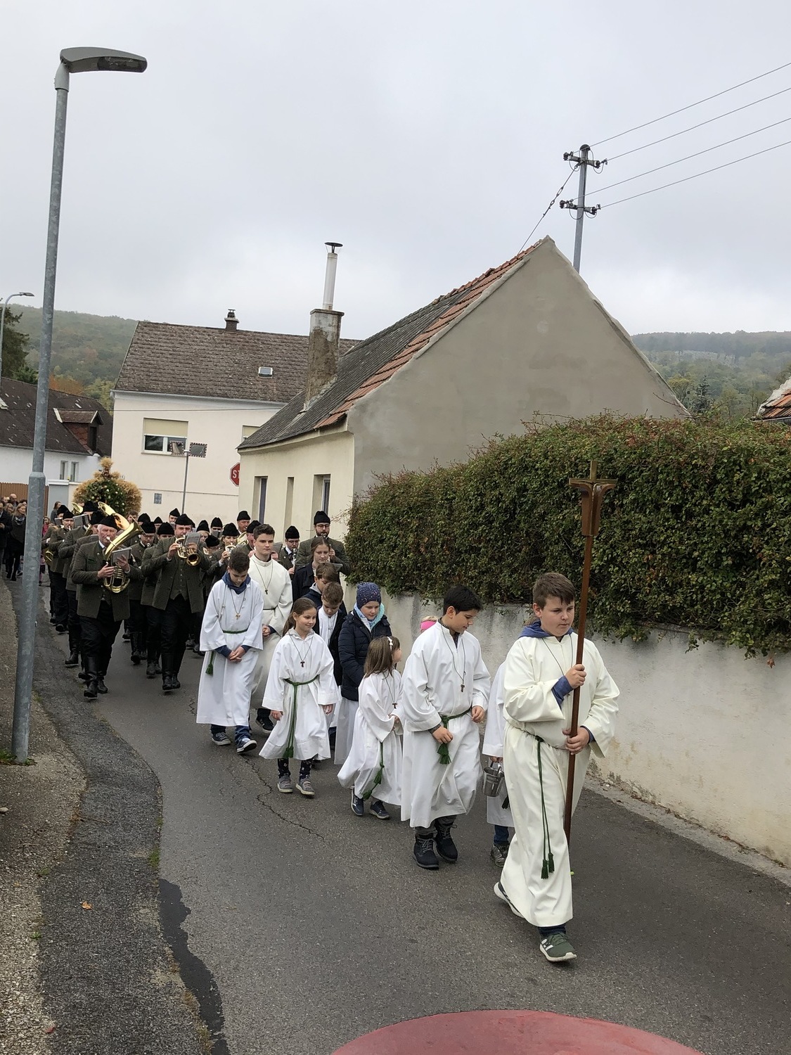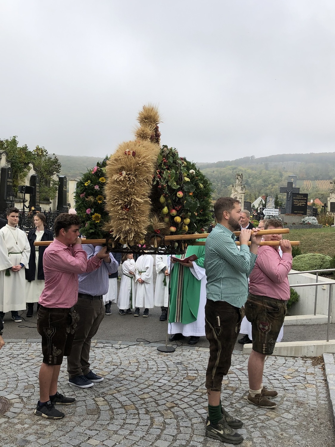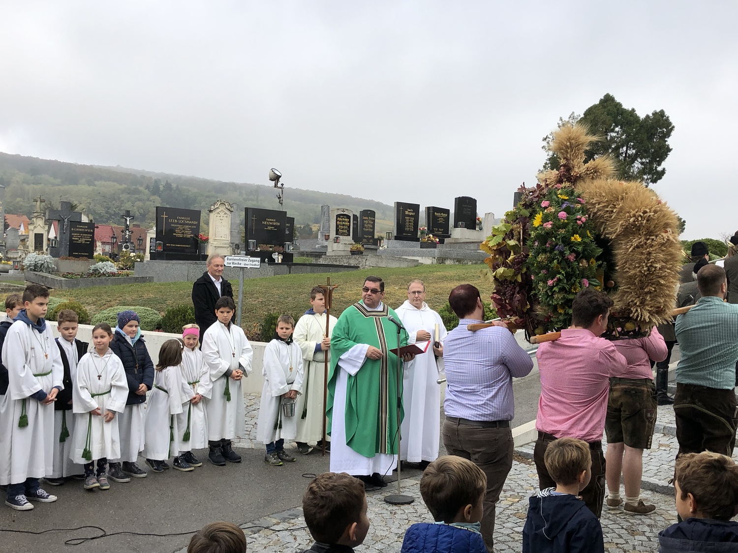 Schön herbstlich geschmückt und mit einer großen Erntedankkrone wurde diese Feier am Sonntag, dem 20. Oktober in der Pfarrkirche Kleinhöflein gestaltet. Orgel, Kirchenchor, Pfarrverband und Blasmusikkapelle trugen musikalisch zur Feier bei. Viele feierten das Fest des Dankes mit. Die Kinder und die Volksschulkinder, die sich auf den Weg der Vorbereitung zur Erstkommunion machen, brachten ihre bunten Obstkörbchen zum Altar.