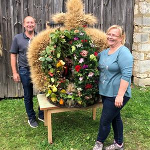 Traditionell ein besonderer Blickfang, war die große Erntedank-Krone, welche unter der Leitung von Birgit Talian mit Hilfe von Regina Lehner, Schwester Evelin, Walter Gaal, Resi Hofleitner und Regina Kaiser gefertigt wurde.