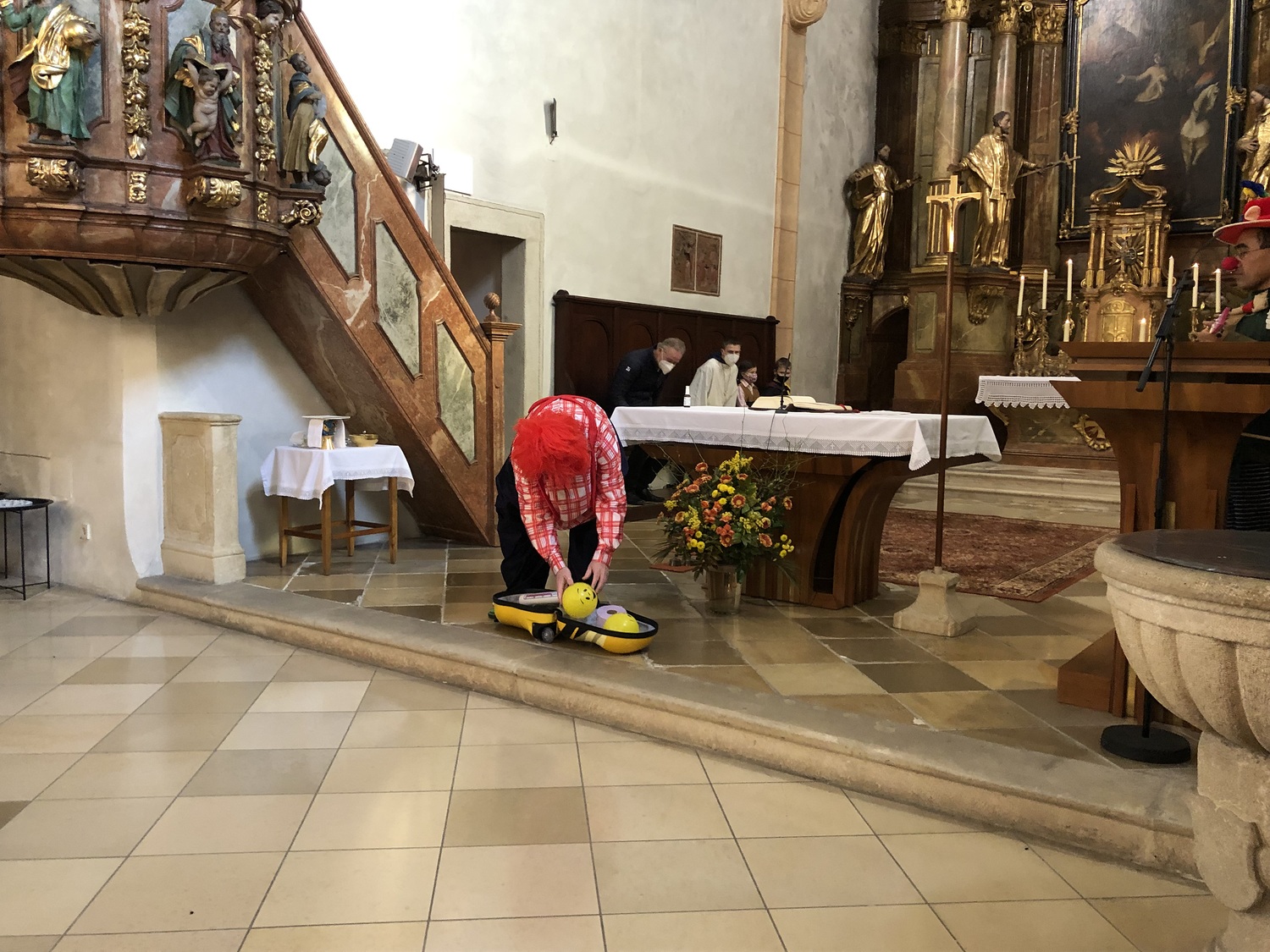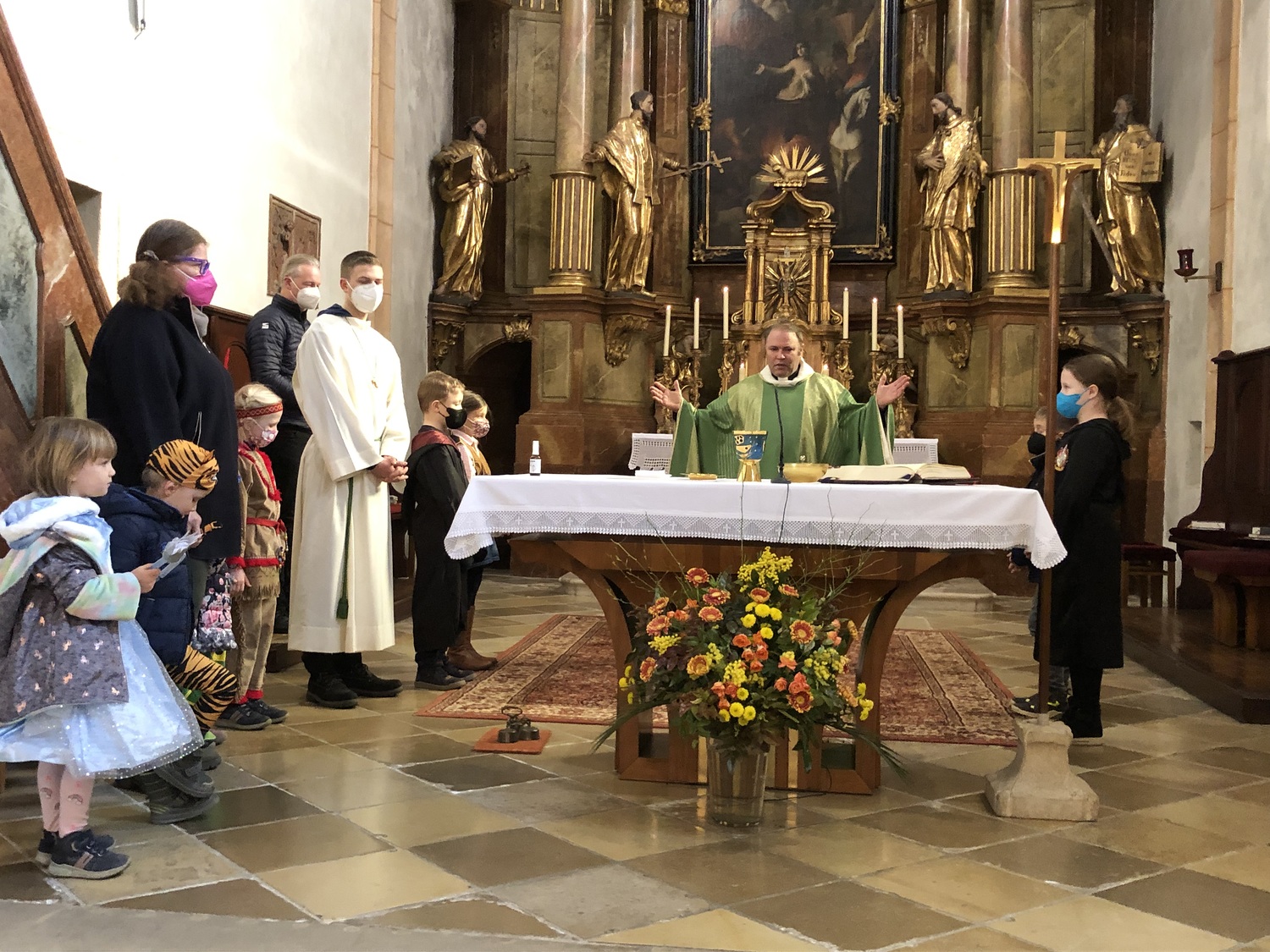 Pfarrer Alexander Wessely begrüßte alle Clowns, Cowgirl & Cowboys, alle Tiger und Indianer, alle Harry Potter & Hermines, alle Prinzessinnen, Polizisten und Pippi Langstrumpfs ...