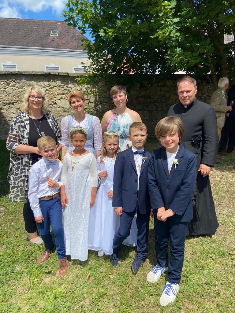 Am Samstag, den 28. Mai 2022, feierten 9 Kinder ihre Erstkommunion. Mit einem festlichen Zug, ging es begleitet von der Winzerkapelle Kleinhöflein, vom Pfarrhof in die Pfarrkirche. Bereits vor einigen Monaten haben sie sich auf den Weg gemacht und waren gemeinsam mit ihren Eltern, Lehrern, Tischeltern und den Mitarbeitern der Pfarre unterwegs.
