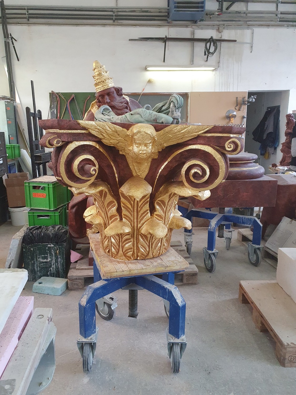 Die Liste der Denkmäler wird sukzessive bis zum 100. Jubiläum der Landeshauptstadt Eisenstadt 2025 abgearbeitet. Die Pestsäule der Fußgängerzone ist derzeit in Arbeit. Die notwendigen Arbeiten werden von Professionisten sowie von unseren Fachkräften im Bauhof gemacht.