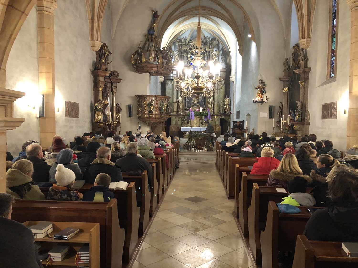 Familien-Rorate mit weit über 200 Mitfeiernden in der übervollen Kleinhöfleiner Kirche. Im Anschluss wurde in den Pfarrhof zum gemeinsamen Frühstück eingeladen.