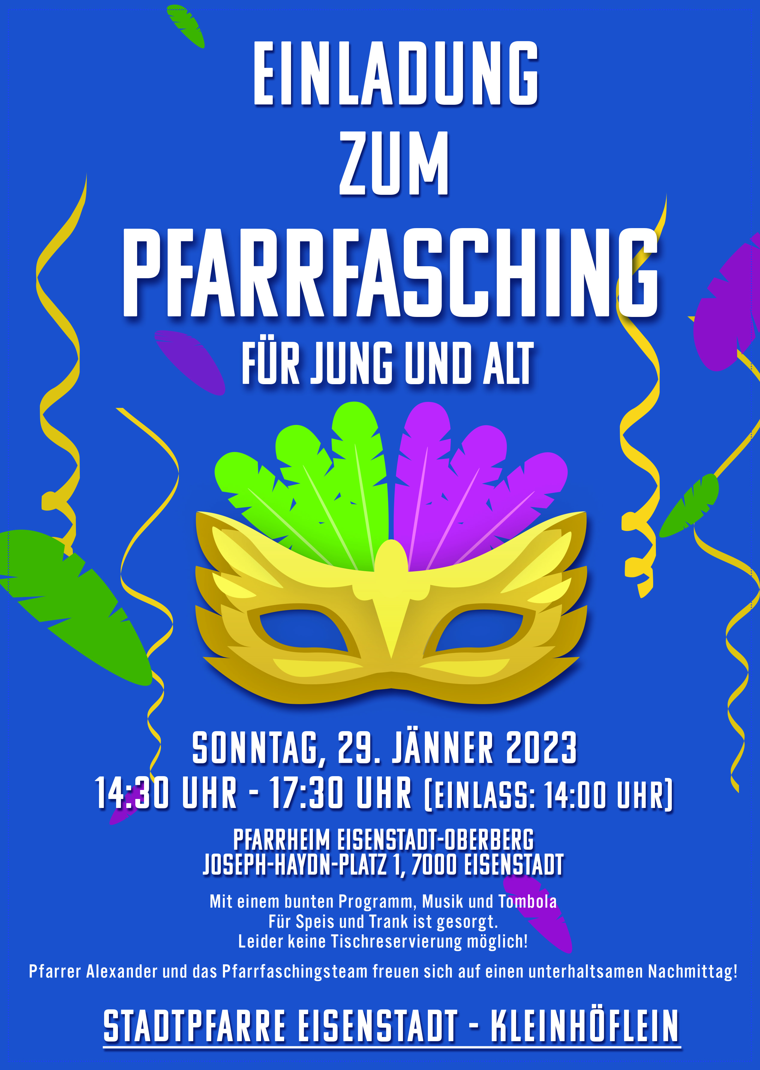 Pfarrfasching 29.1.2023 - 14:30 - 17:30 Uhr