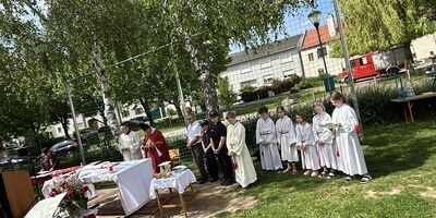Heute waren wieder die Häuser, Straßen und Plätze im Dorf in der Stadt geschmückt. Nach der Hl. Messe in der Pfarrkirche wurde die Prozession zu den 4 Altären im Dorf von der Winzerkapelle...