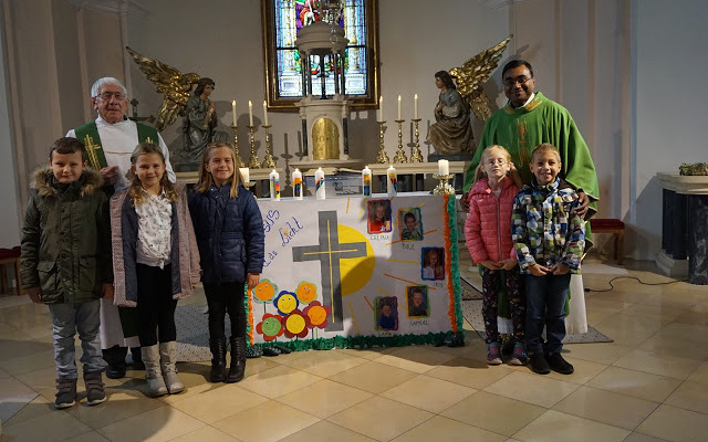 Im Rahmen des Sonntags- Gottesdienstes haben unsere 5 Erstkommunionkinder sich vorgestellt. „Jesus das Licht“ lautet unser Thema heuer für die Erstkommunionvorbereitung. Die Kinder hatten viel Freude bei der Gestaltung des Gottesdienstes mit Liedern, Musik und Texten. Wir wünschen unseren Kindern viel Freude bei der Erstkommunionvorbereitung.