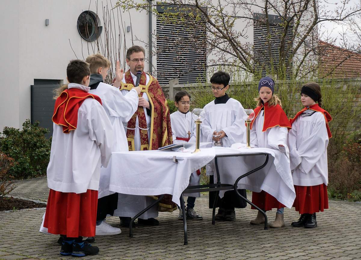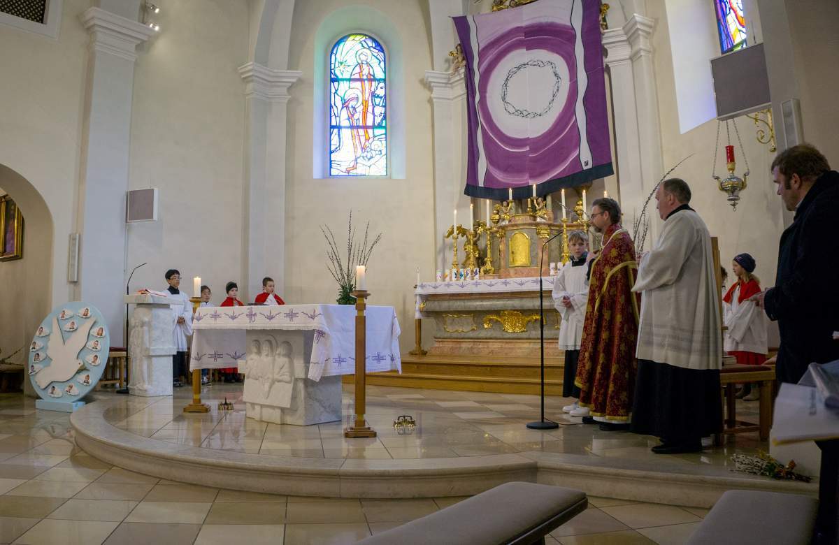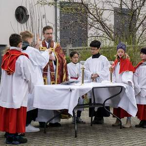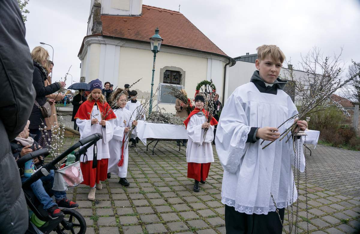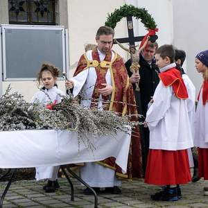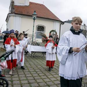 Am Sonntag, 2.4.2023, versammelten sich vor der Marienkapelle die Gläubigen. Pfarrmoderator Mag. Stefan Jahns segnete die Palmbuschen. In einer Prozession ging es anschließend in die Pfarrkirche  zur Feier der Heiligen Messe. Die Leidensgeschichte Jesu wurde mit verteilten Rollen gelesen.