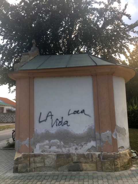 Im Jahr 2018 wurde die Fassade durch Vandalismus beschädigt.